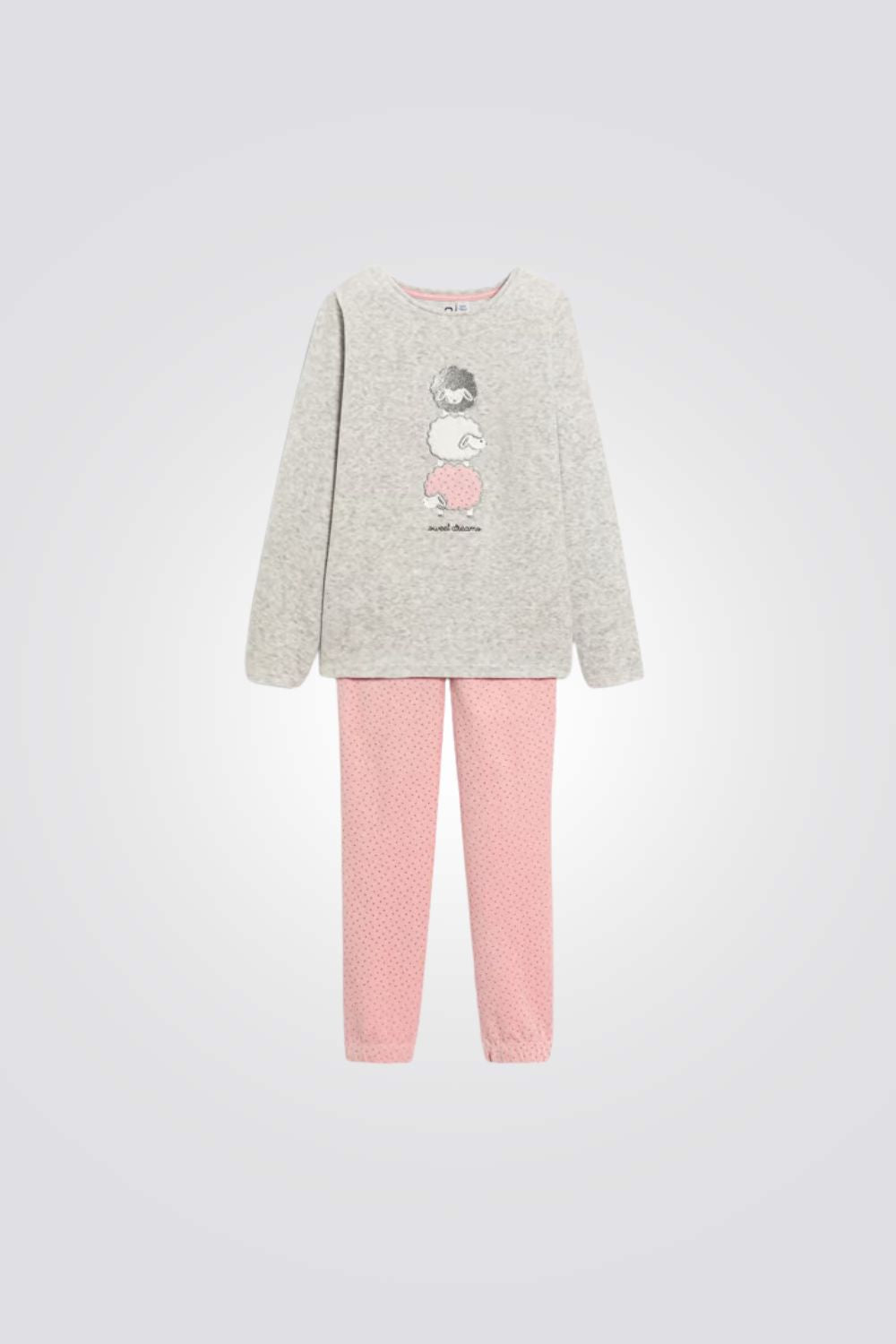 סט פיג'מה לילדות בצבע ורוד ואפור