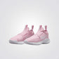 נעלי ספורט מבית המותג NIKE לילדות בצבע ורוד ולבן, בעלות סוליה חיצונית גמישה המסייעת לספק אחיזה על משטחים מרובים, סוליית ספוג העוטפת את העקב במתן יציבות ונוחות, גפה רשת לאוורור ורצועה אלסטית בחלק העליון המחזיקה את הרגל.