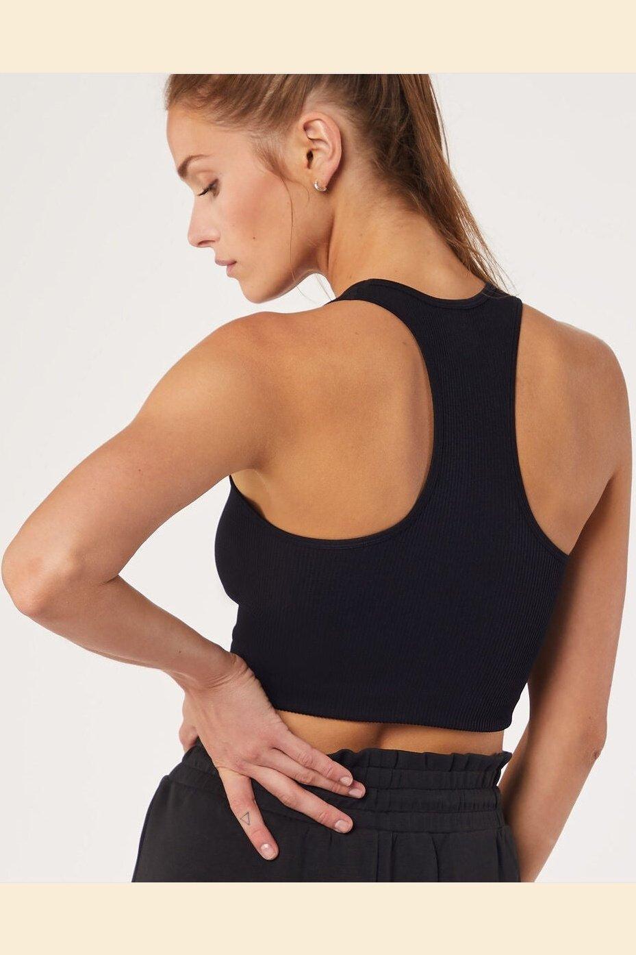 טופ ספורטיבי מבית המותג הצרפתי ETAM עם מחשוף עגול וגב במפתח רייסר, ארוג בדוגמת פסי ריב בטכנולוגיית סימלס - ללא תפרים לנוחות מקסימלית וחופש תנועה.