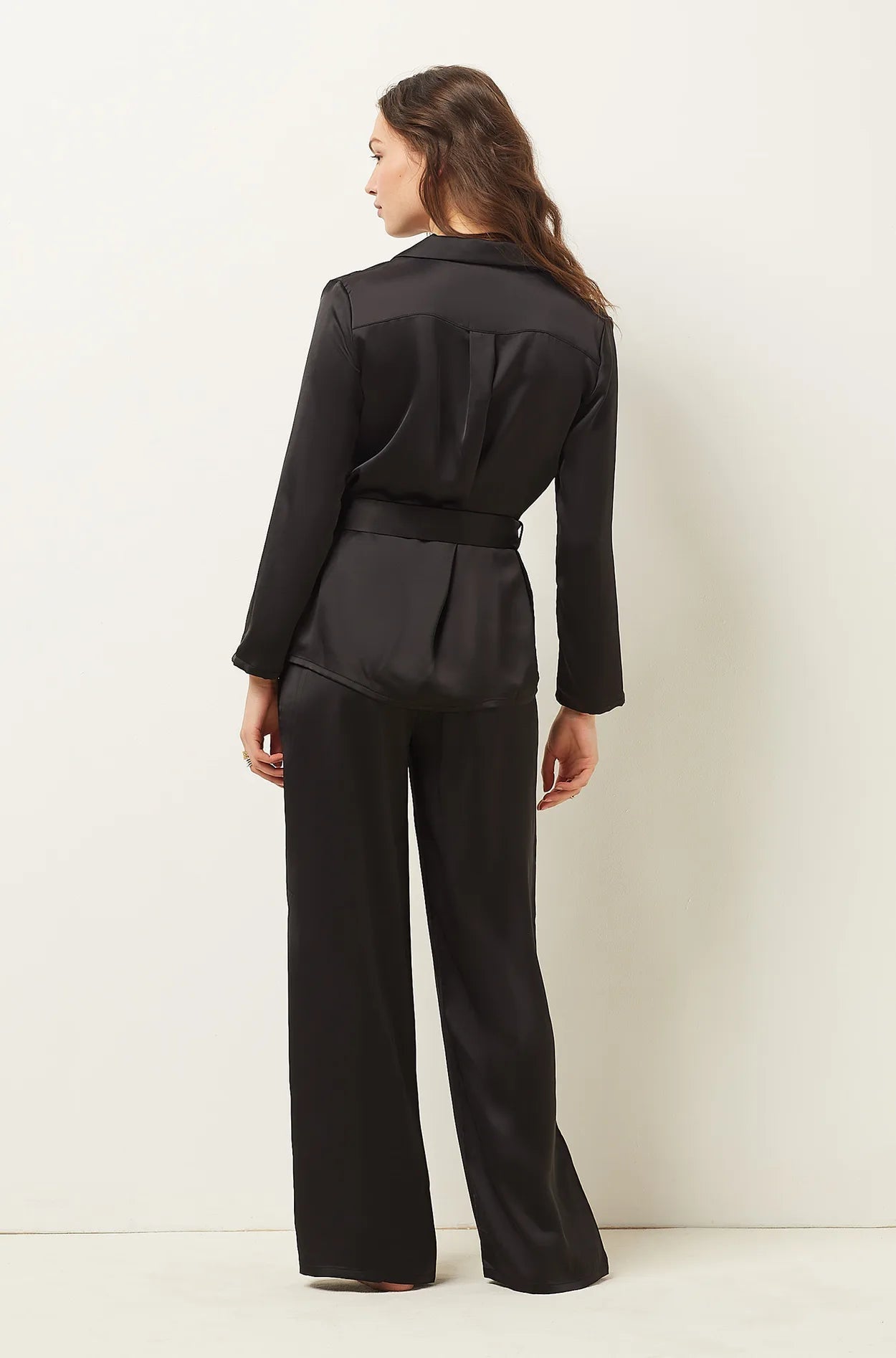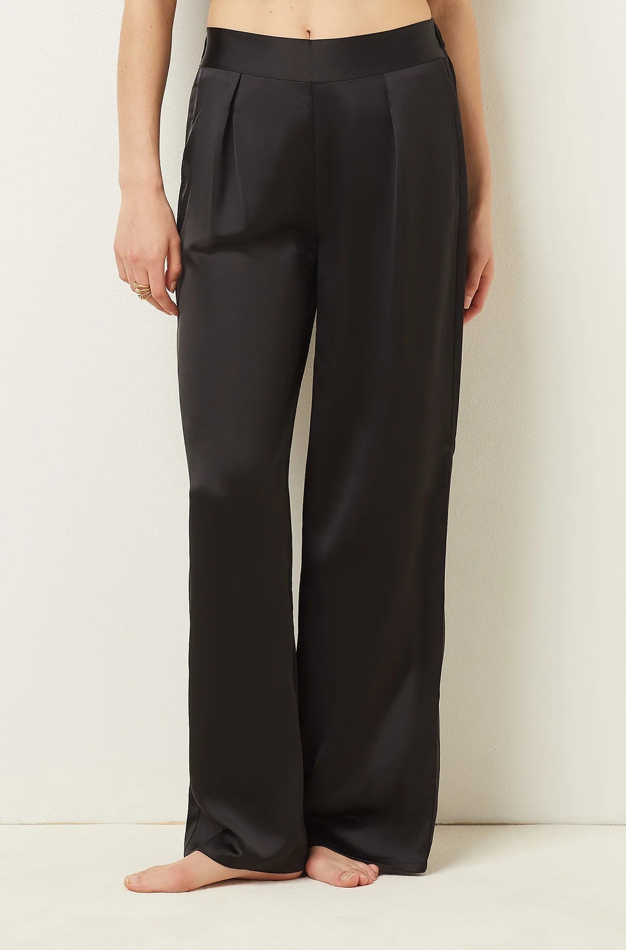מכנסי פיג'מה סאטן ארוכים ERINA בצבע שחור