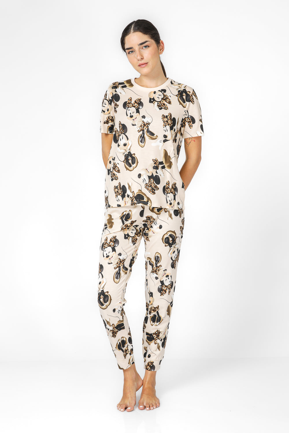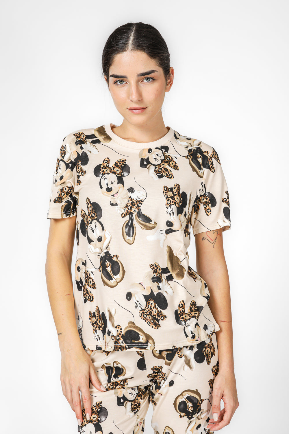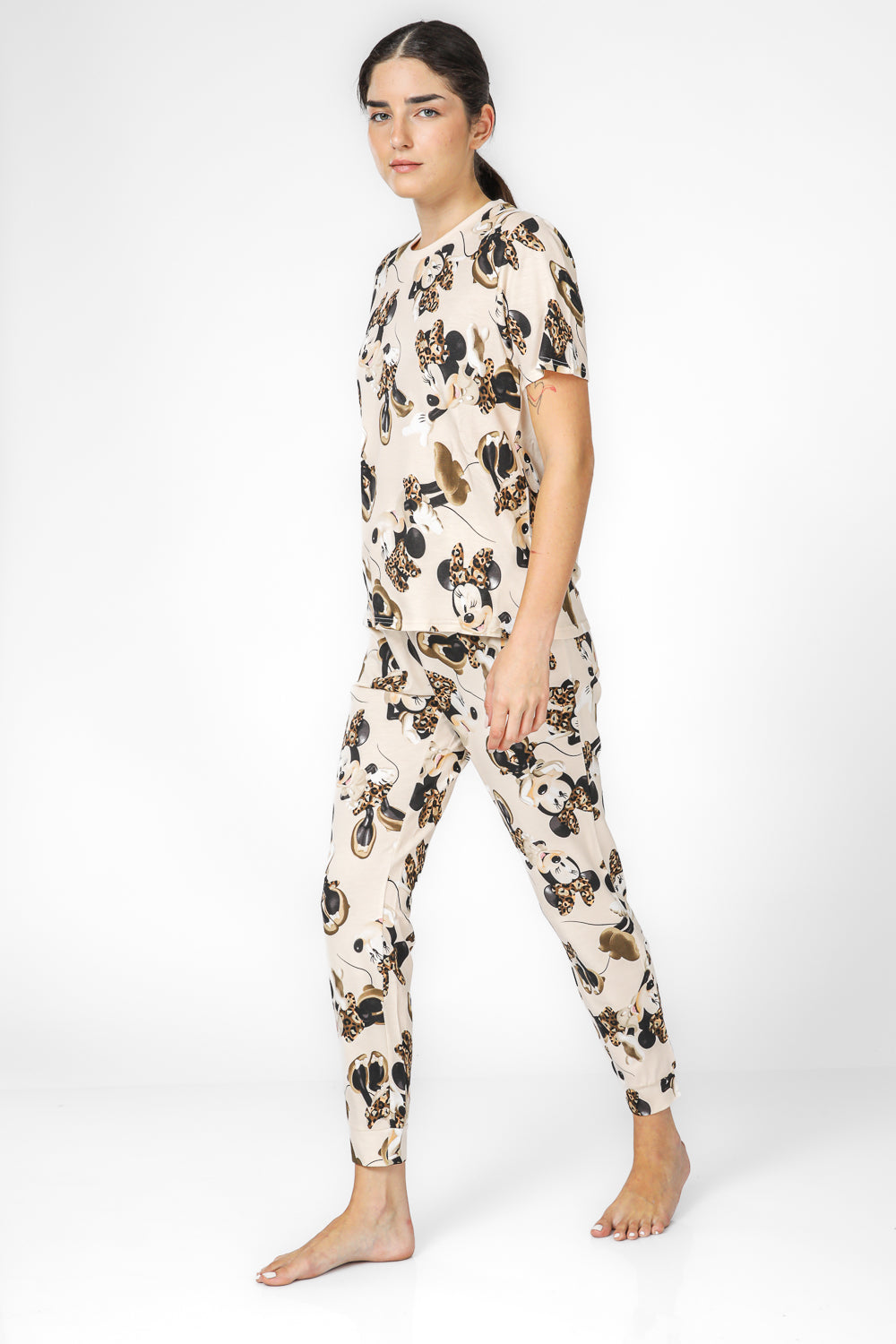 סט פיג'מה מיני מנומרת לנשים בצבע NUDE