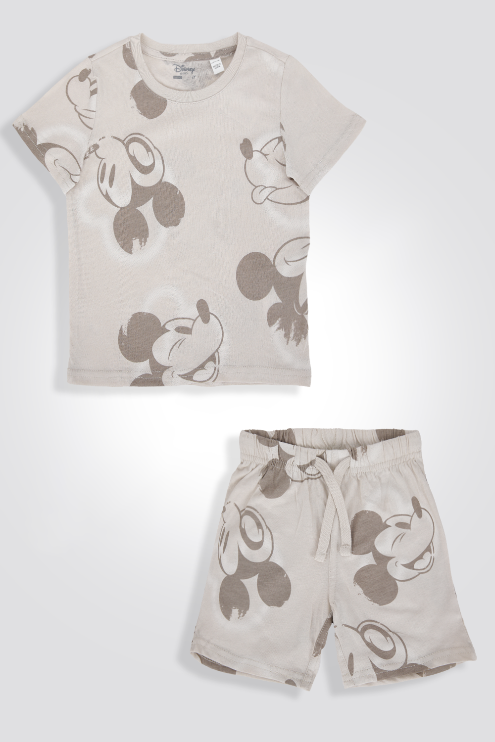 סט פיג'מה לילדים מבית המותג DELTA העשויה מבד קליל ונעים בהדפס מדליק של מיקי מאוס. חולצה עם צווארון עגול ושרוולים קצרים ומכנסיים קצרים תואמים עם גומי במותניים.