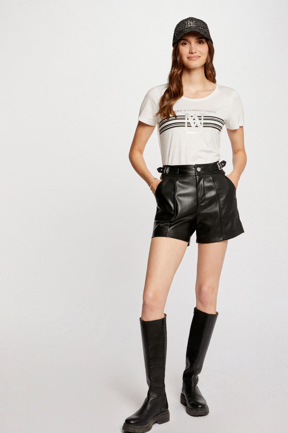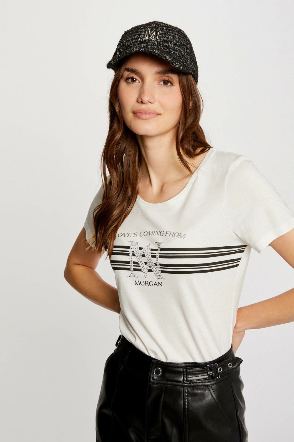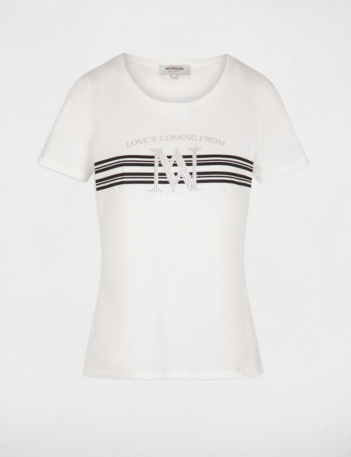 חולצת טי עם שרוולים קצרים בצבע לבן