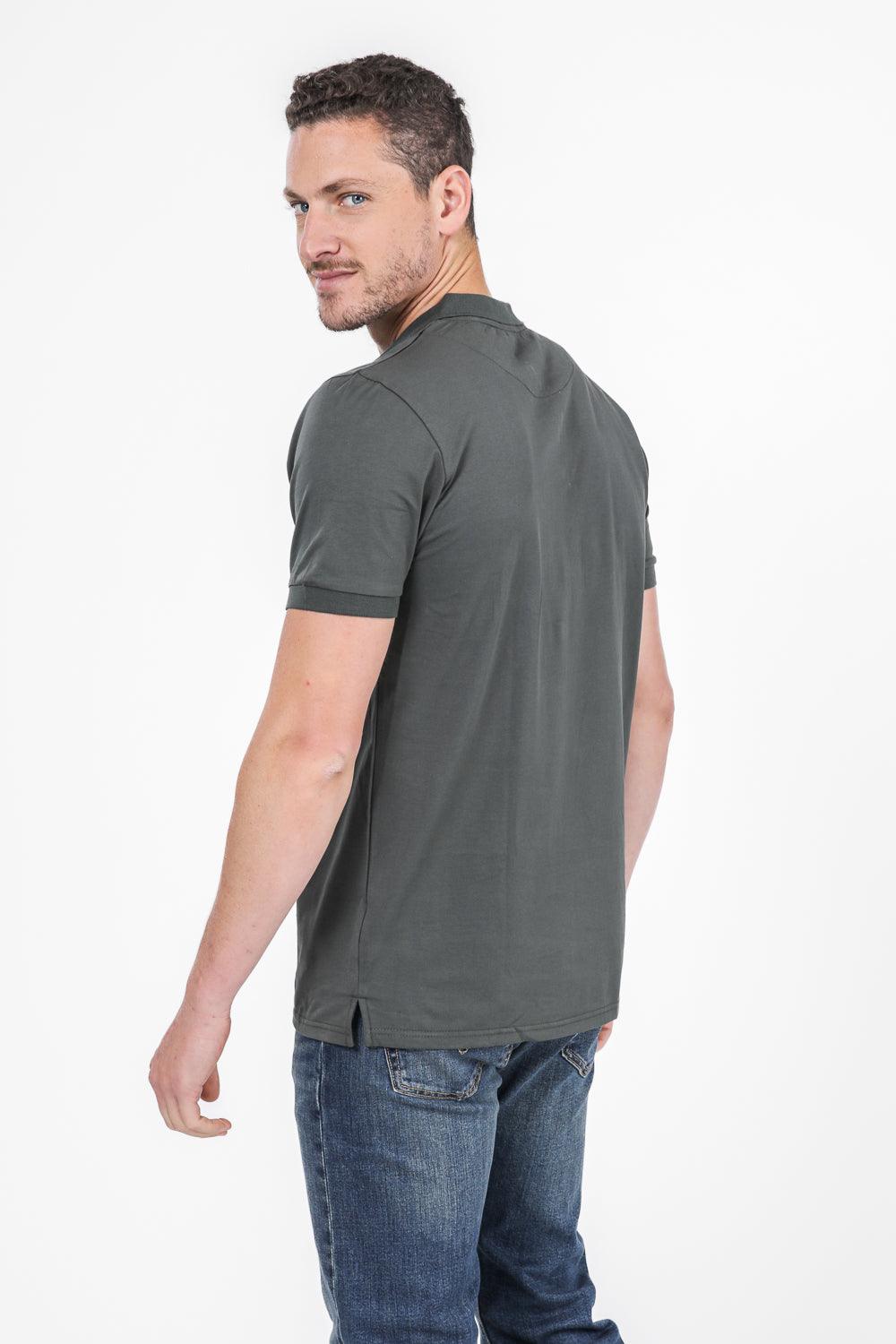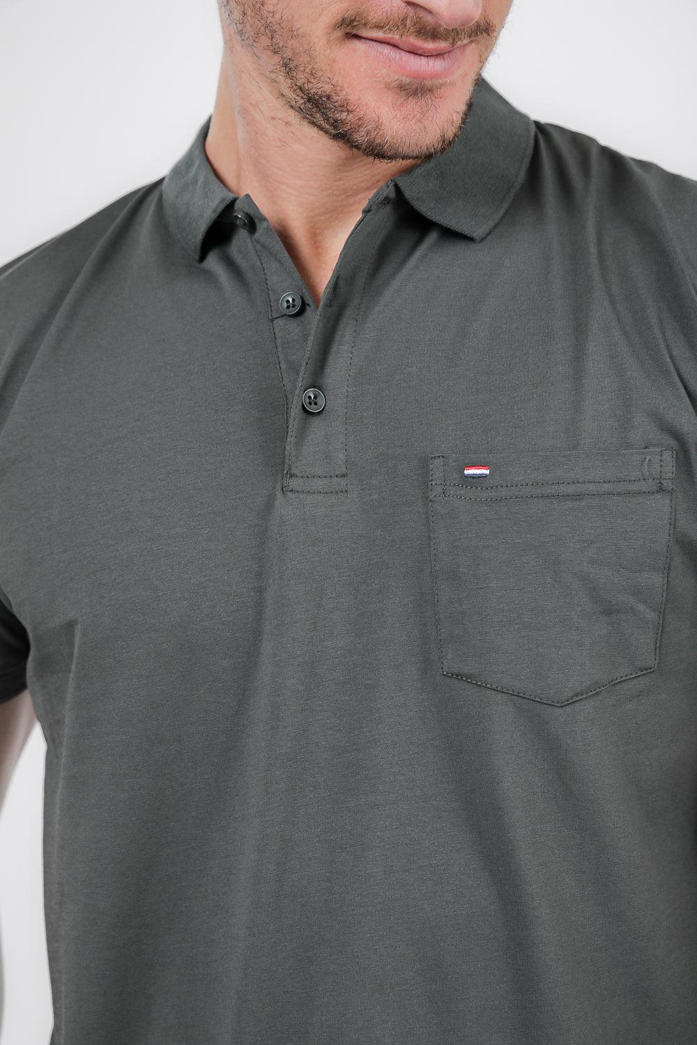 טישירט פולו עם כיס בחזה בצבע ירוק זית