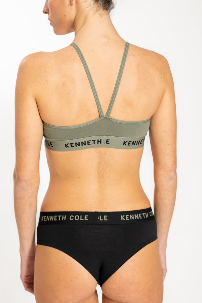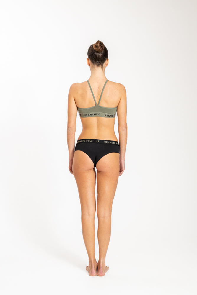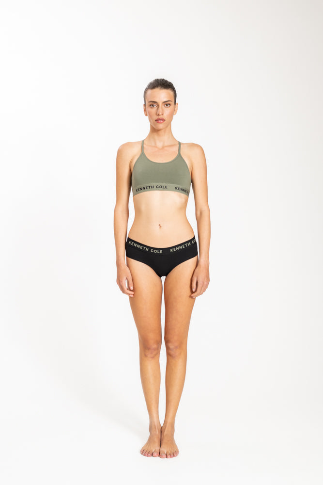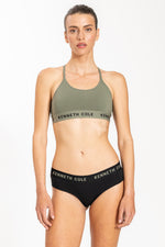 גוזיית ספגטי לוגו עם גומי צר בצבע ירוק זית
