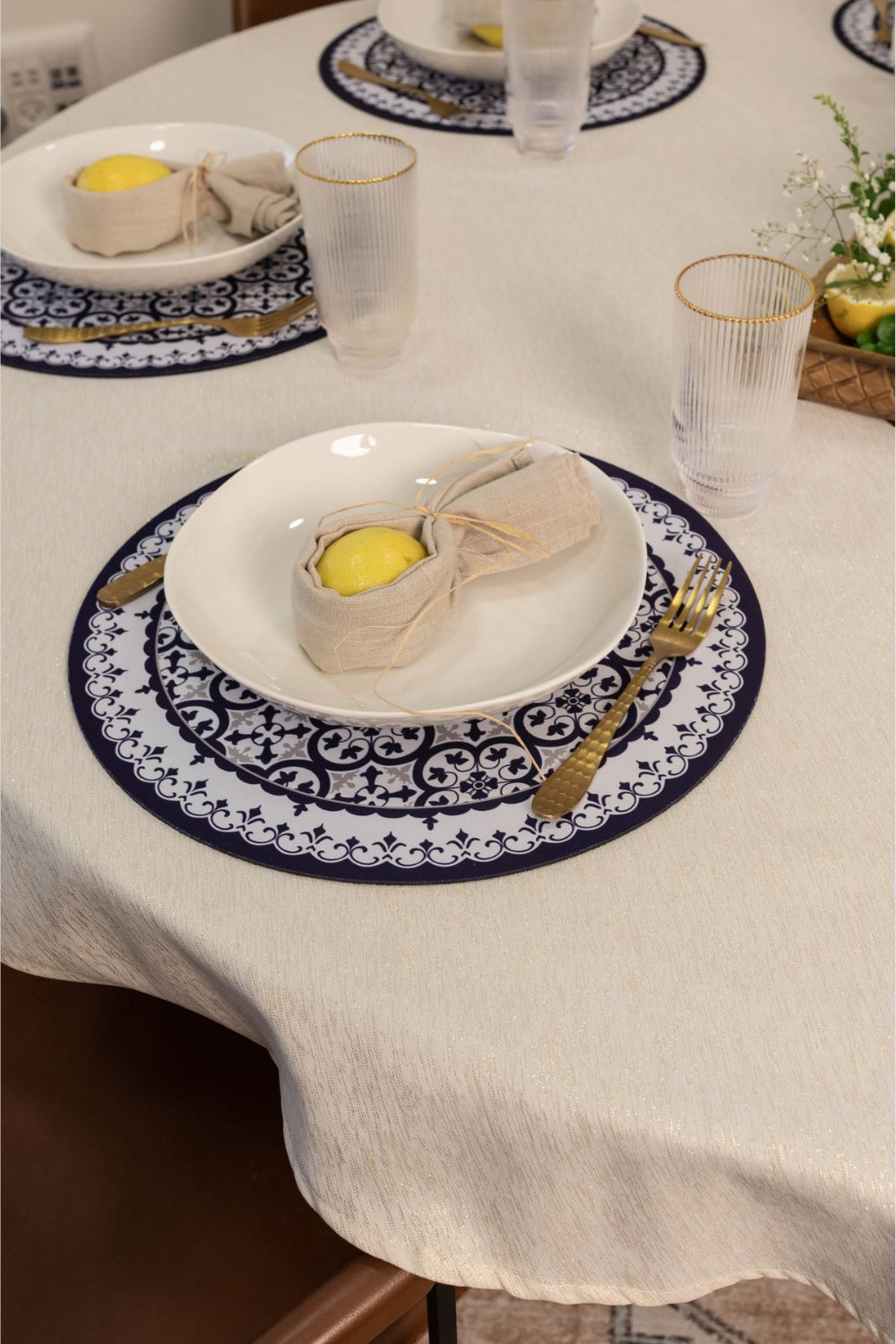 מפה מבית המותג ASHRAM, בעיצוב אלגנטי ונקי הנותן לשולחן מראה חגיגי ומפואר .