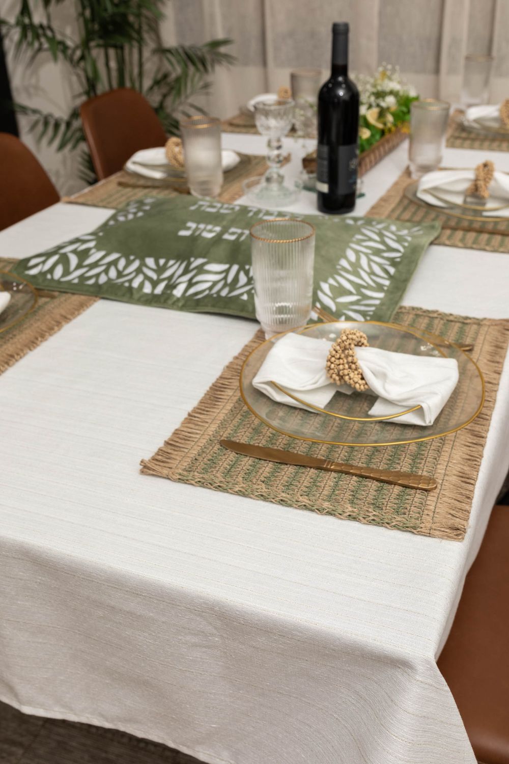מפה מבית המותג ASHRAM, דגם נעמה, בעיצוב נקי ואלגנטי המעניק לשולחן מראה חגיגי.