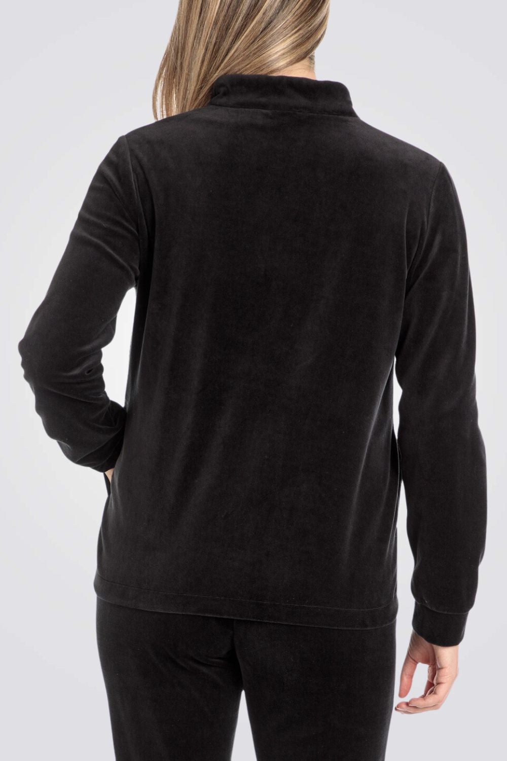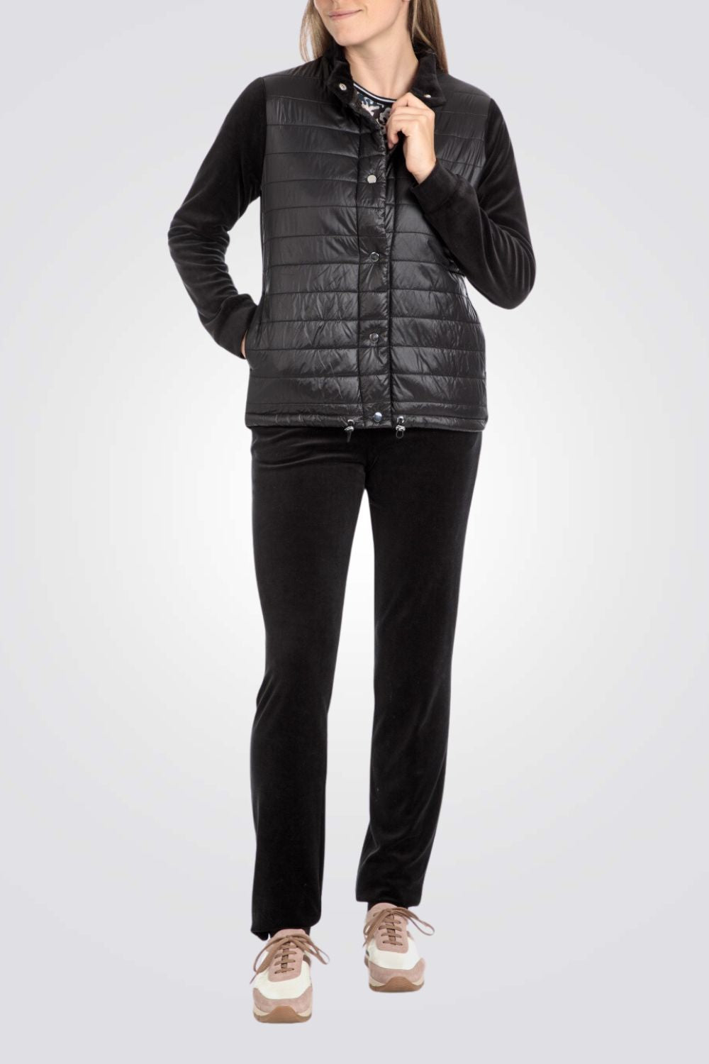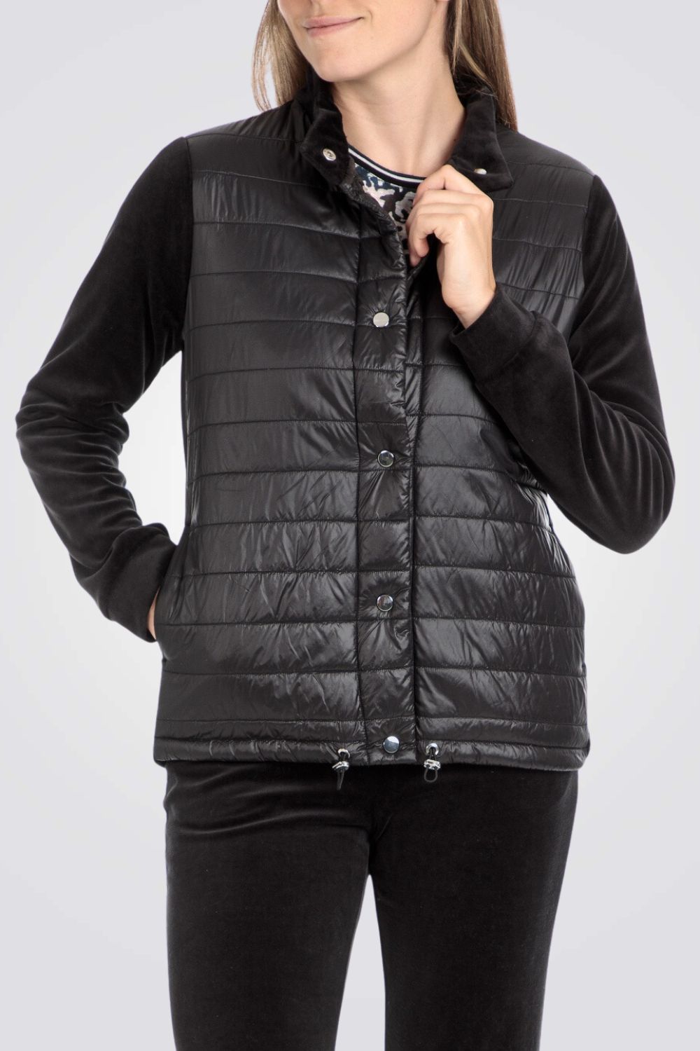 ג'קט לנשים מבית המותג PUNT ROMA בצבע שחור, מרופד בחלקו, בעל שרוולים ארוכים, מכפלת בשילוב שרוכי גומי, צווארון גבוה וסגירת לחצניות.
