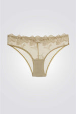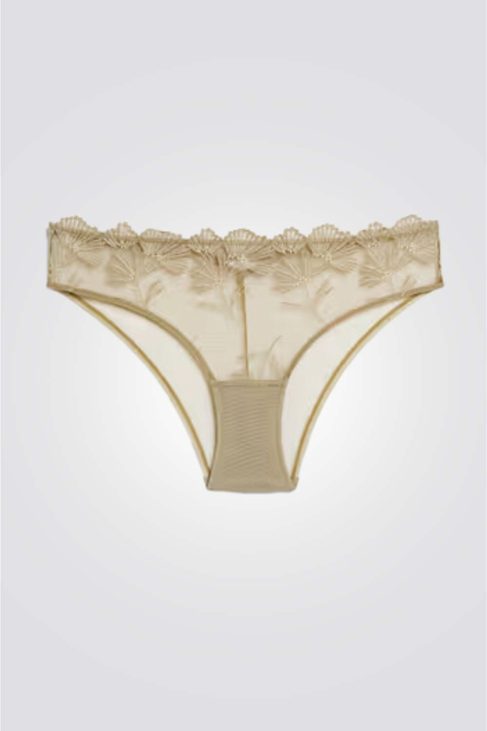 תחתוני היפסטר לנשים מבית המותג ETAM עשויים בד טול דק ושקפקף עם עיטורי תחרה פרחוניים בקו המותניים.