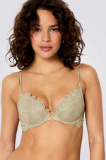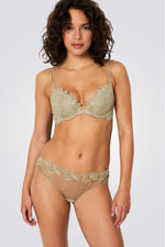 חזיית פוש אפ מבית המותג הצרפתי ETAM בעלת כתפיות כפולות דקות ומתכווננות, לולאה זהובה במרכז החזייה וקאפים בעיצוב פרחוני מיוחד.