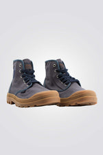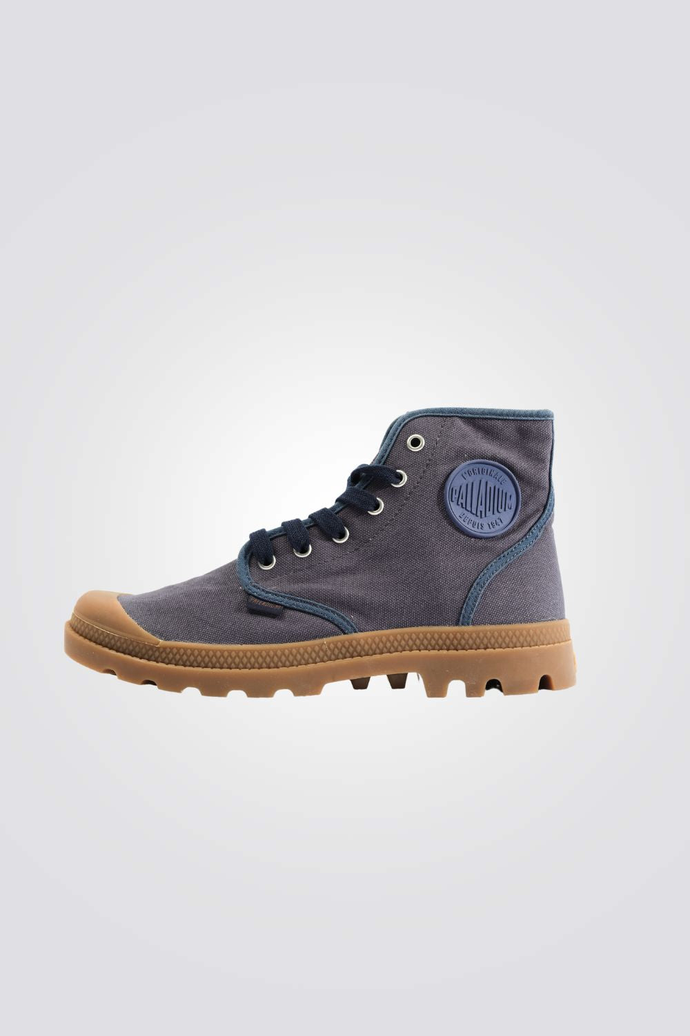 מגפונים לגברים מבית המותג PALLADIUM, בצבע כחול נייבי, בעיצוב קלאסי עם סגירת סרוכים וסוליית גומי.