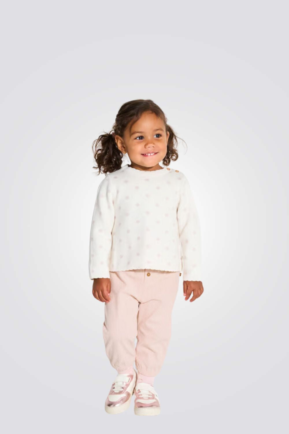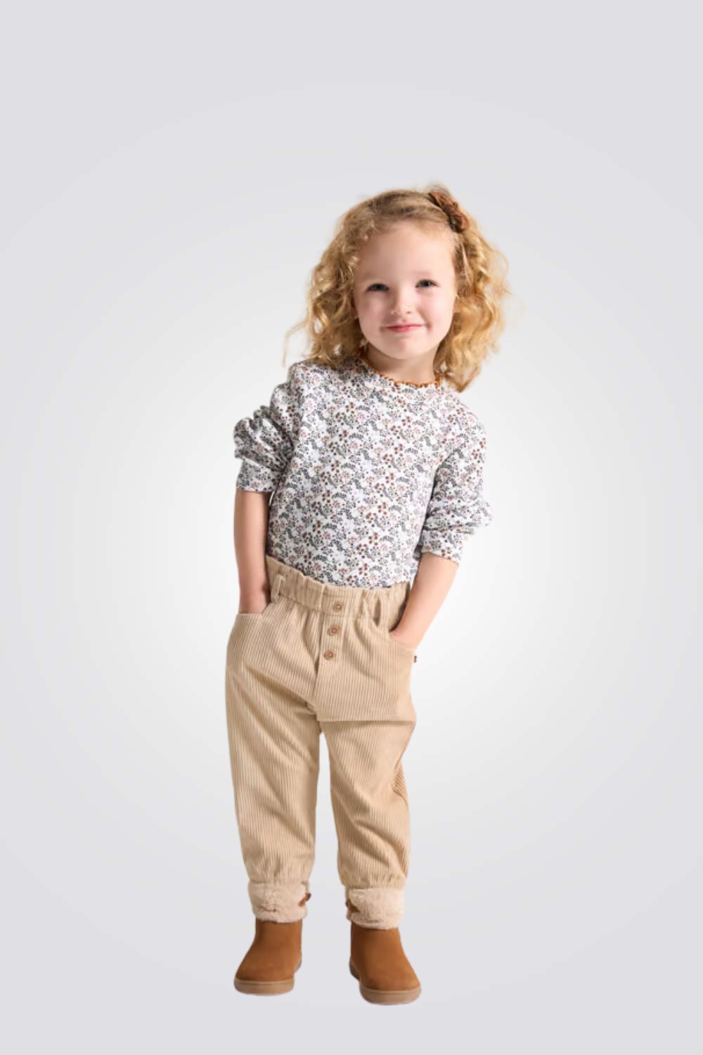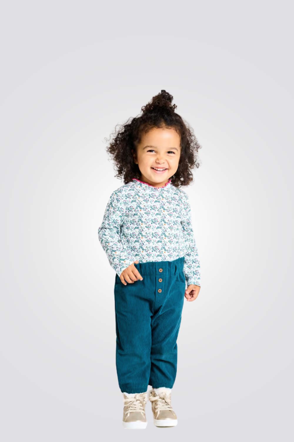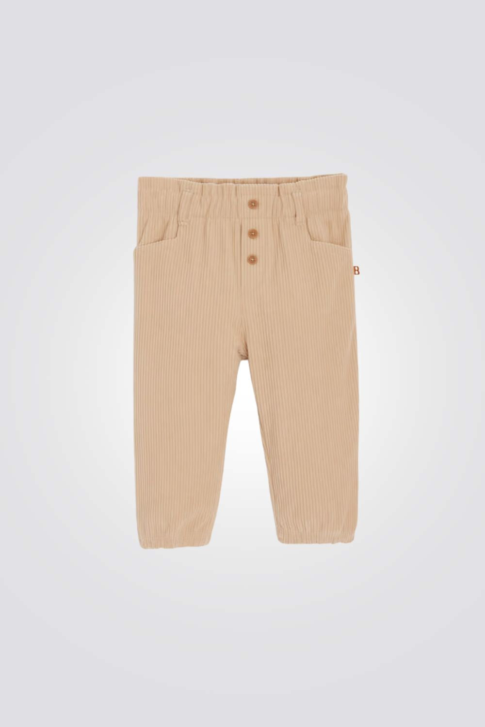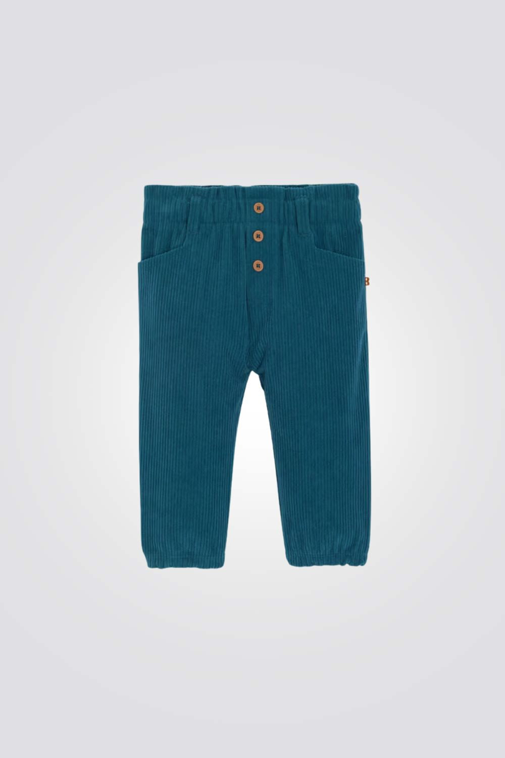 מכנסי קורדרוי לתינוקות מבית המותג OBAIBI, בגזרה נוחה , עם סגירת כפתורים וסיומת גומי ברגליים.