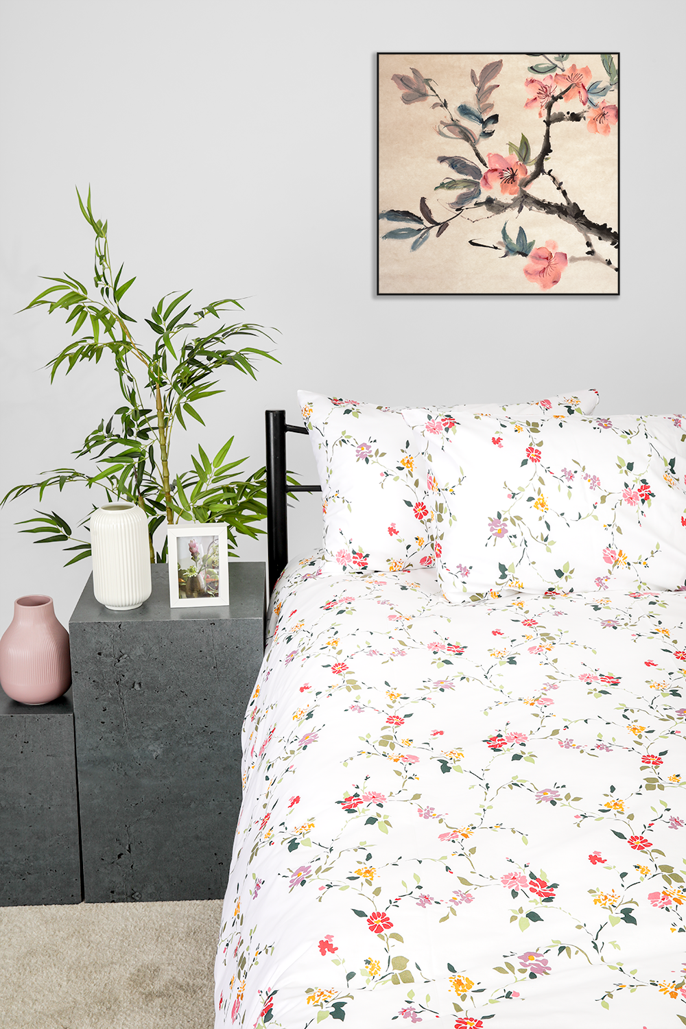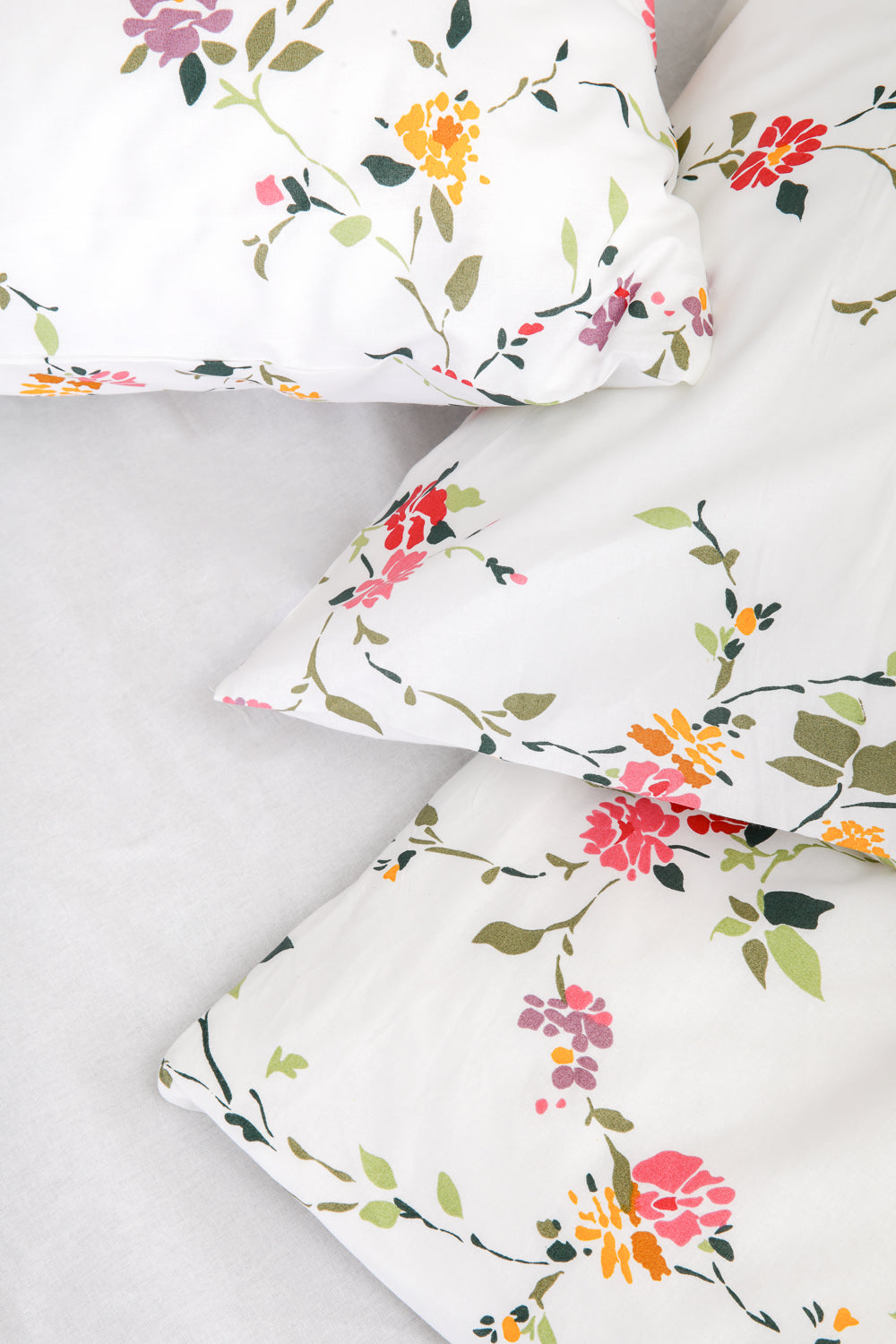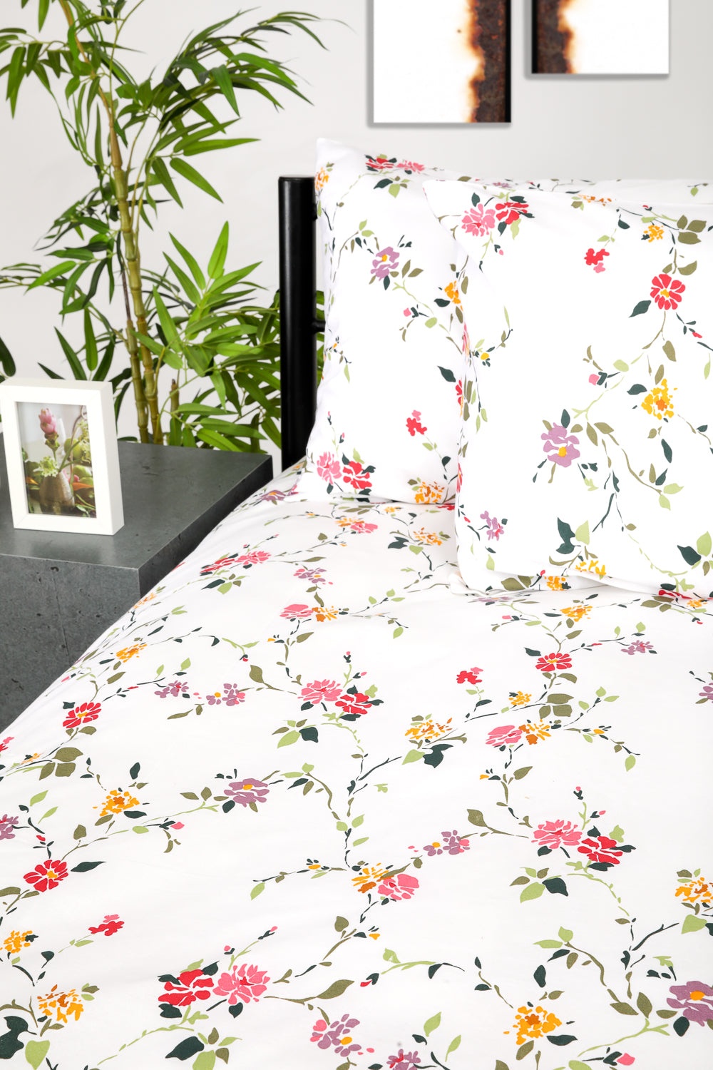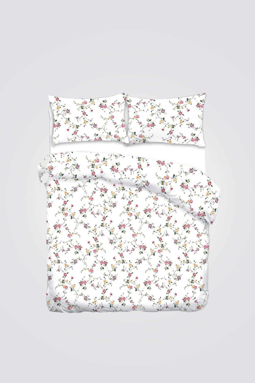 סט מצעים זוגי 180/200 ס"מ 100% כותנה דגם קמילה גוון לבן פרחוני'