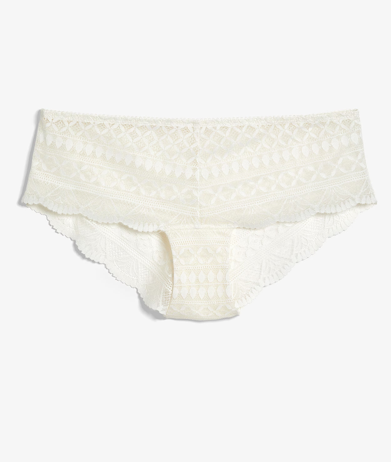 תחתונים בגזרת בוקסרון, מבית המותג הצרפתי ETAM, מקולקציית IDOLE האייקונית, עם שוליים רחבים וכיסוי מלא מאחור, עשויים תחרה עדינה בדוגמה גרפית ייחודית ואלגנטית, ובגימור גלי המשתלב עם גופך בשלמות.