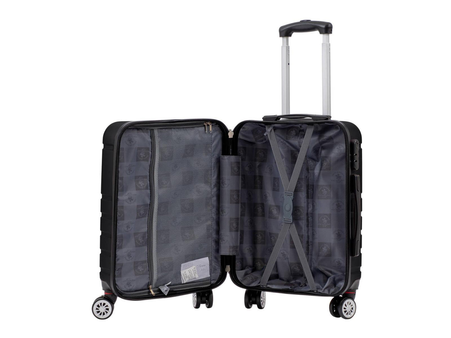 המזוודה מגיעה עם חלוקה פנימית, 4 גלגלים כפולים מסתובבים 360 מעלות, ידית נשלפת מתכווננת.