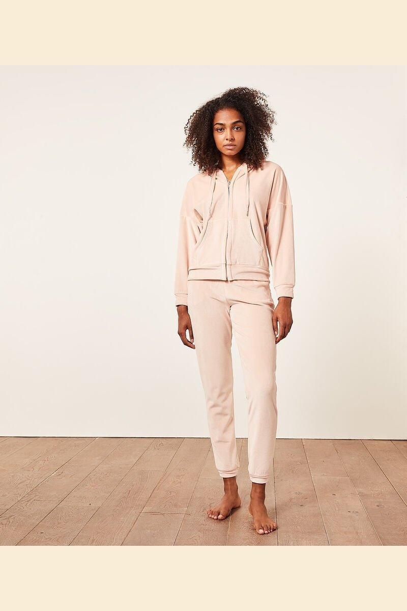 מכנסיים קטיפתיים ונעימים של המותג ETAM, בגזרה צרה, עם שני כיסים צידיים, רצועת מותן אלסטית עם שרוך קשירה, וסיומת מנג'ט בתחתית.