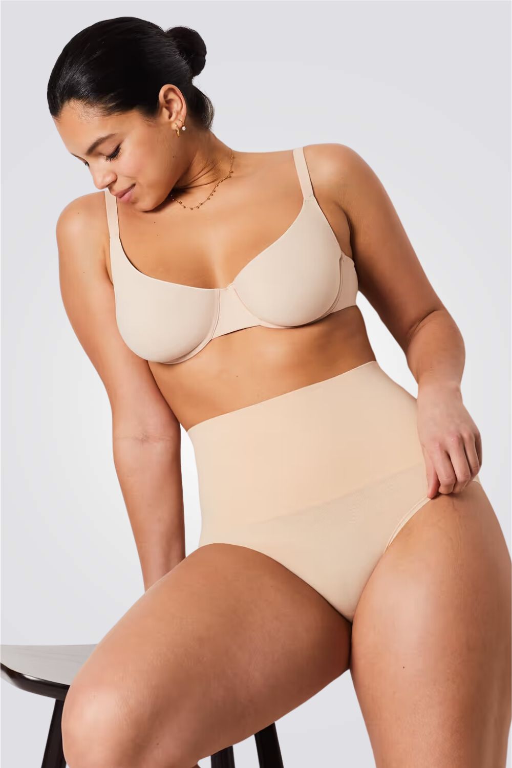 תחתוני ביקיני מותן גבוהה בצבע בז'