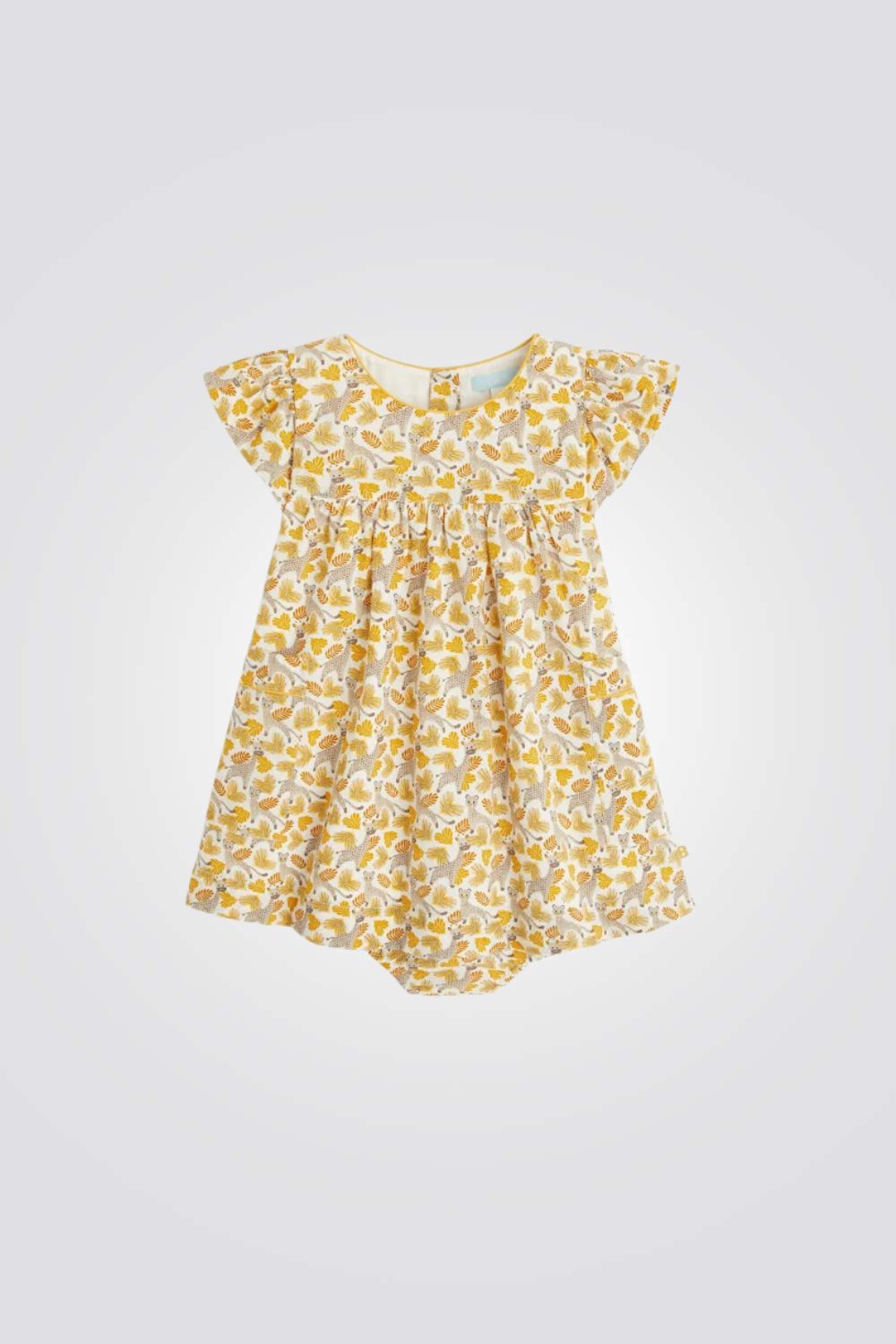 שמלה לתינוקות בצבע צהוב עם הדפס חיות