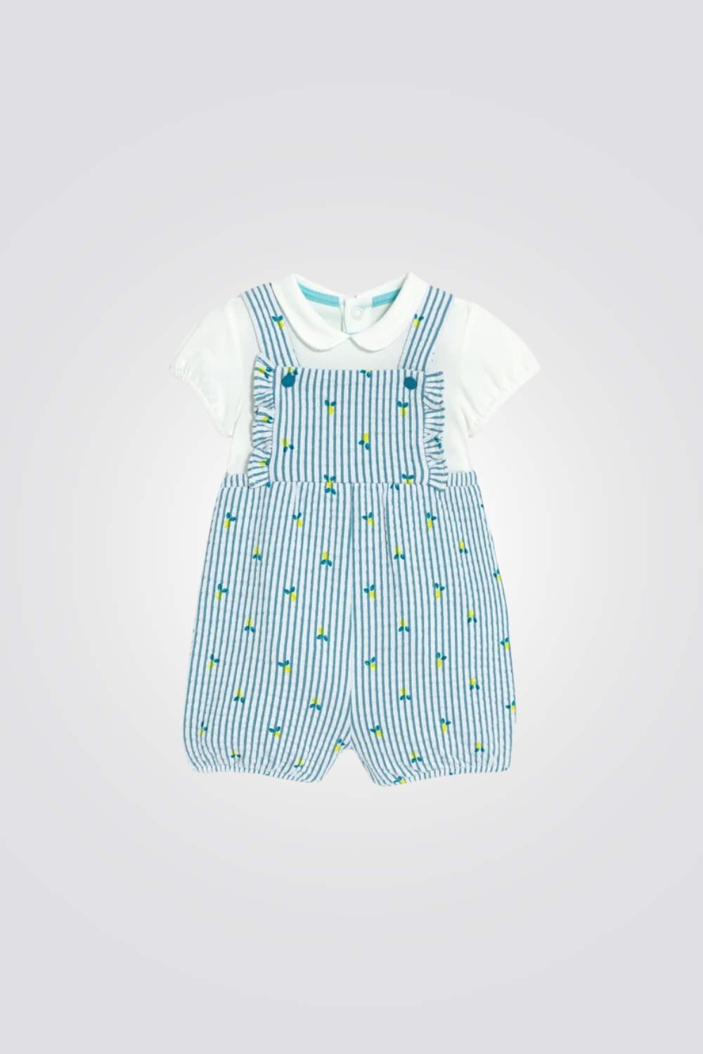 סט של אוברול ובגד גוף לתינוקות בצבע כחול עם הדפס לימונים