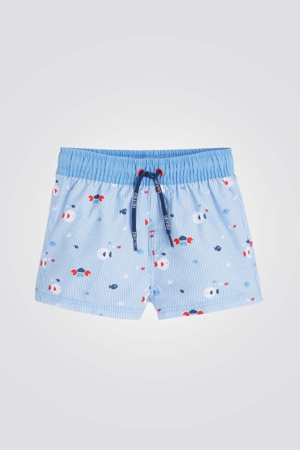 מכנס בגד ים מבית המותג OBAIBI,בעלי רצועת מותן פנימית גמישה עם שרוכים, בד המתייבש במהירות והדפס דגים.