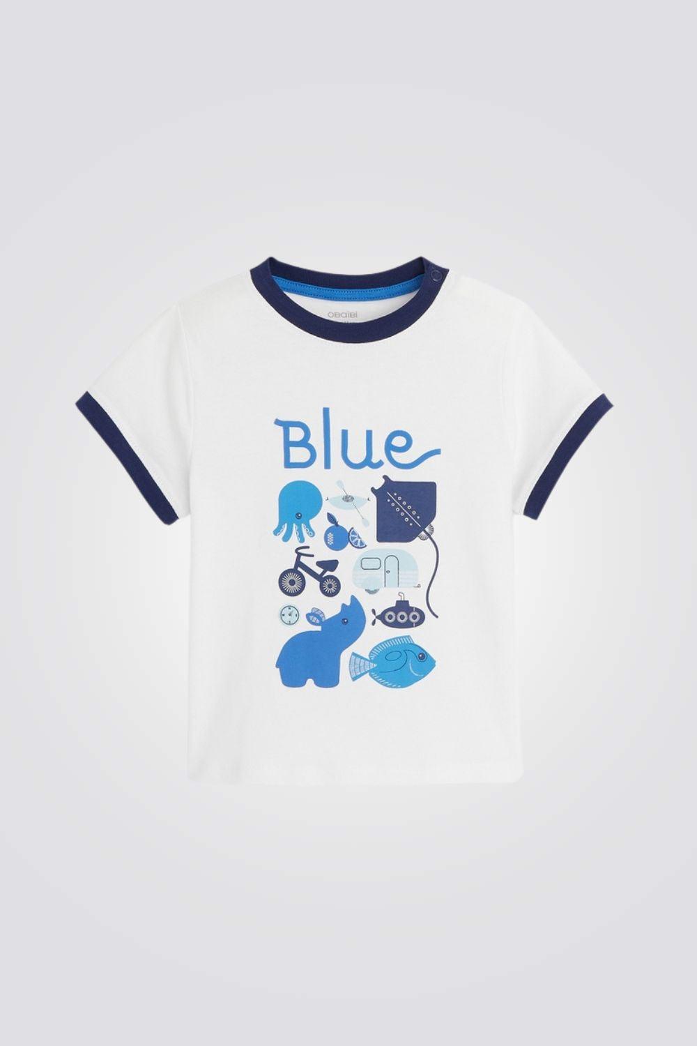 חולצת טריקו בעלי חיים כחולה לתינוקות