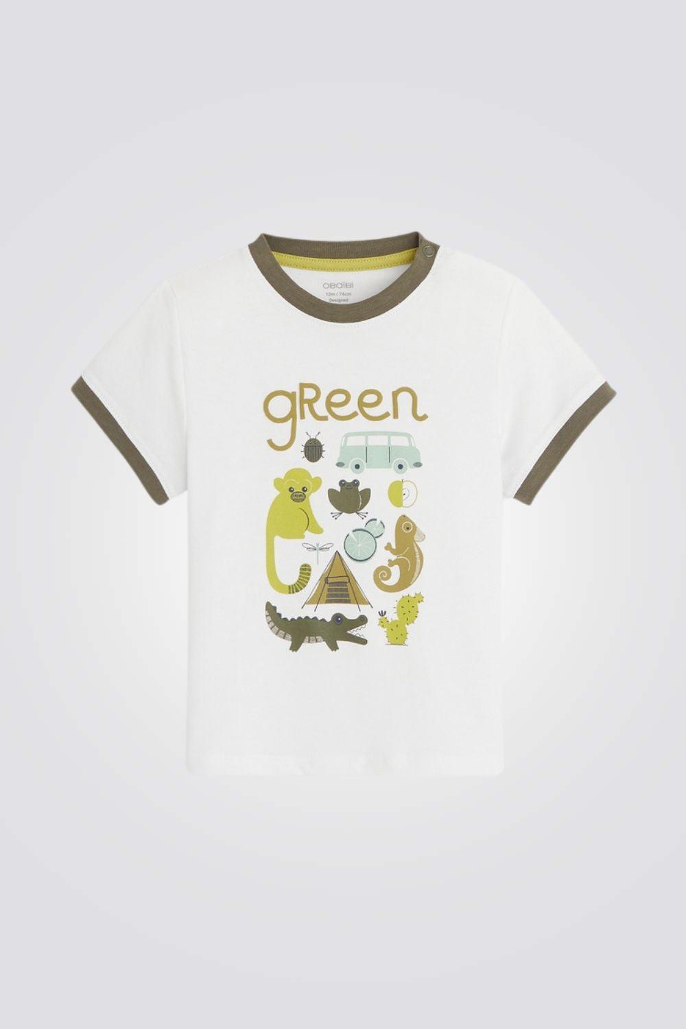 חולצת טריקו בעלי חיים ירוקה לתינוקות