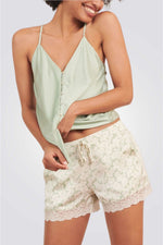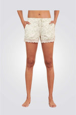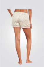 מכנסיים קצרים של המותג ETAM מבד סאטן נעים בהדפס פרחוני עדין ועיצוב תחרה. עם שרוכי קשירה וכיסי צד.
