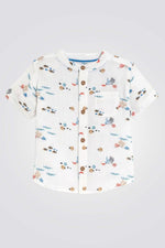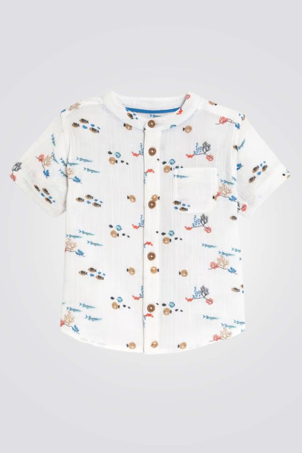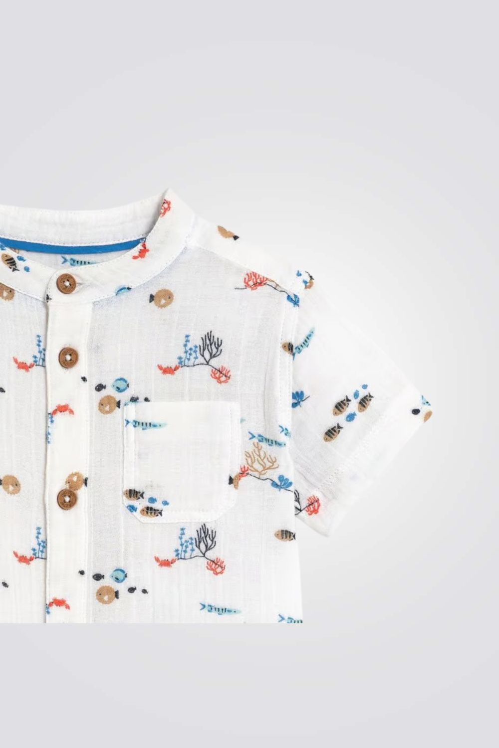 חולצה מכופתרת לתינוק בצבע לבן עם הדפסים עדינים