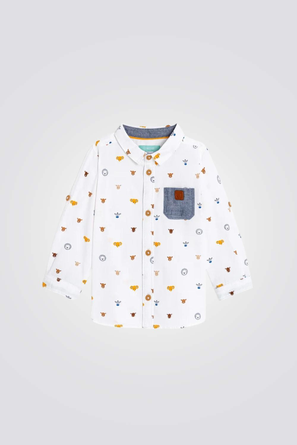 חולצה מכופתרת לתינוקות בצבע לבן עם הדפס חיות