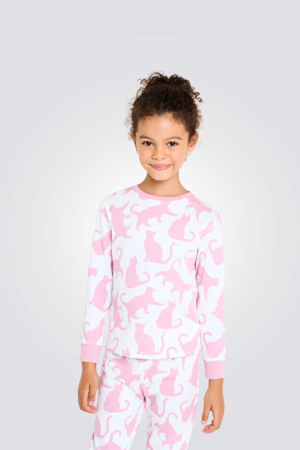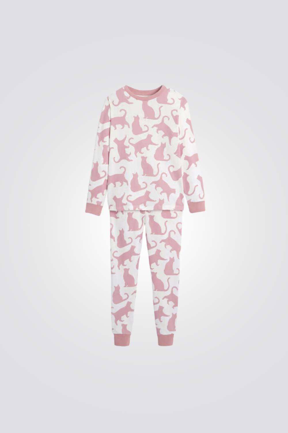 סט פיג'מה לילדות עם הדפס חתולים בורוד