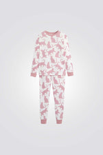 סט פיג'מה לילדות מבית המותג OKAIDI, עשויה מבד ג'רסי נעים ונוח , חולצה עם צווארון עגול ושרוולים ארוכים, ומכנסיים עם מותן אלסטית.