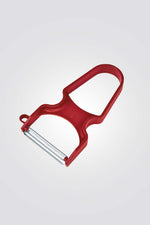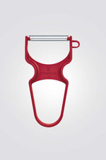 קולפן אדום מעוצב ידית ארגונומית המאפשרת שימוש בשתי הידיים.