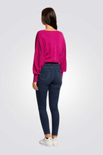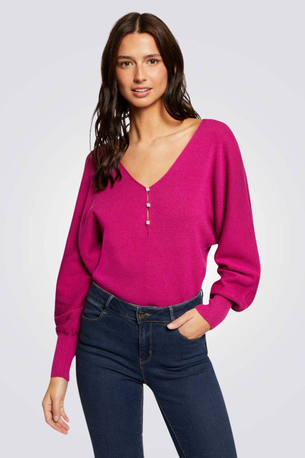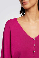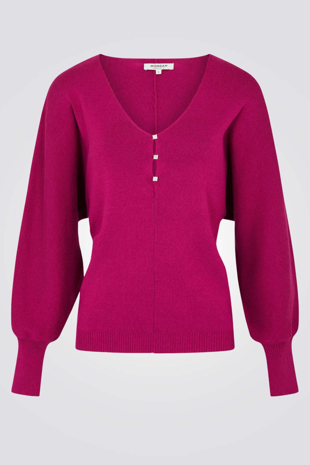 סריג נשים וי שרוול תפוח בורוד פוקסיה