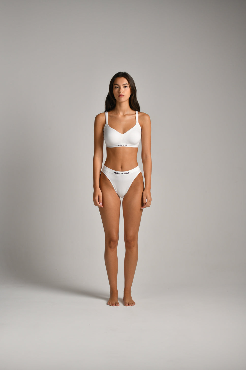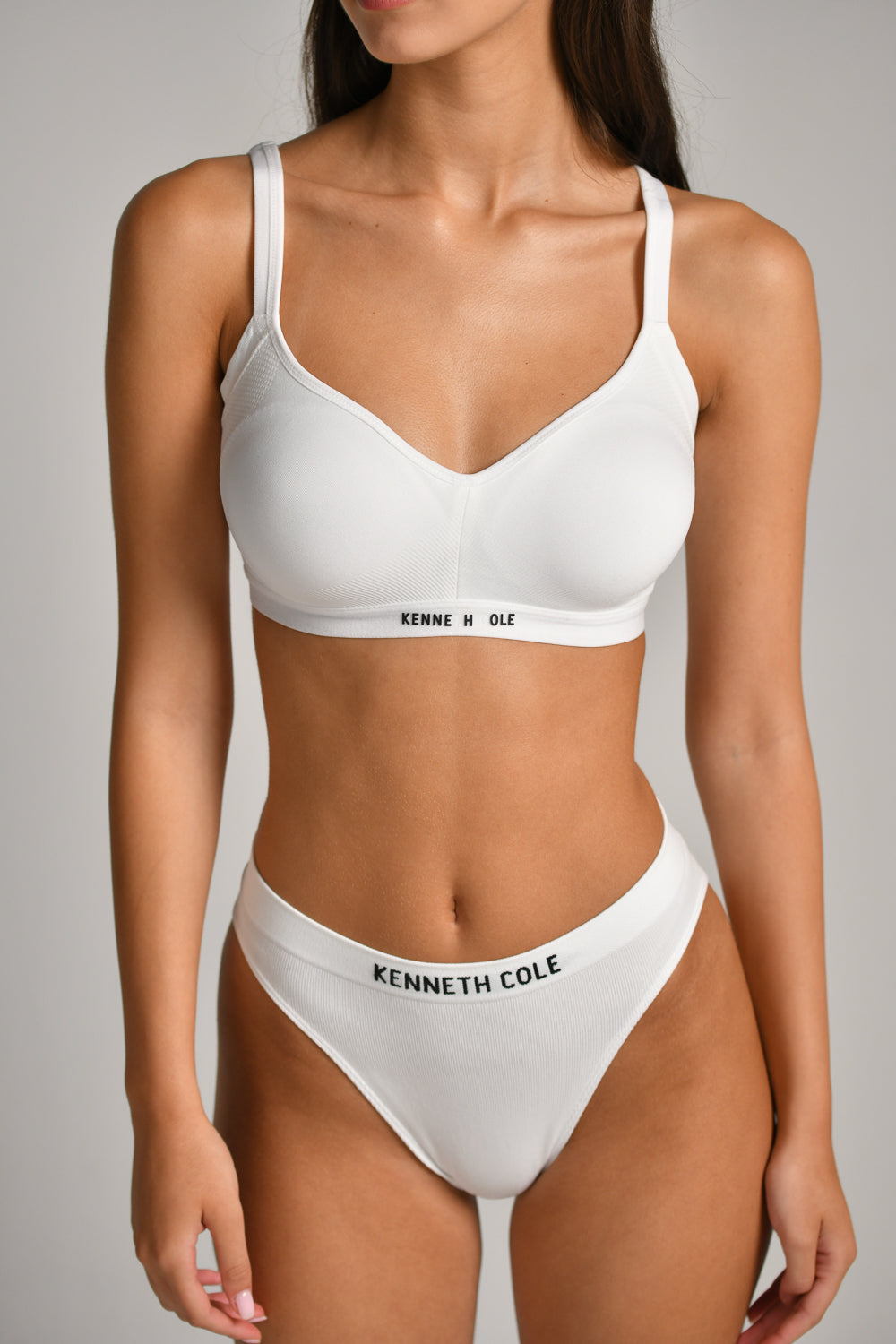 חזייה סימלס מבית המותג KENNETH COLE לנשים, עשויה בד ריב , ללא ברזלים, עם קאפים בעלי ריפוד קל, כתפיות מתכווננות והדפס לוגו.