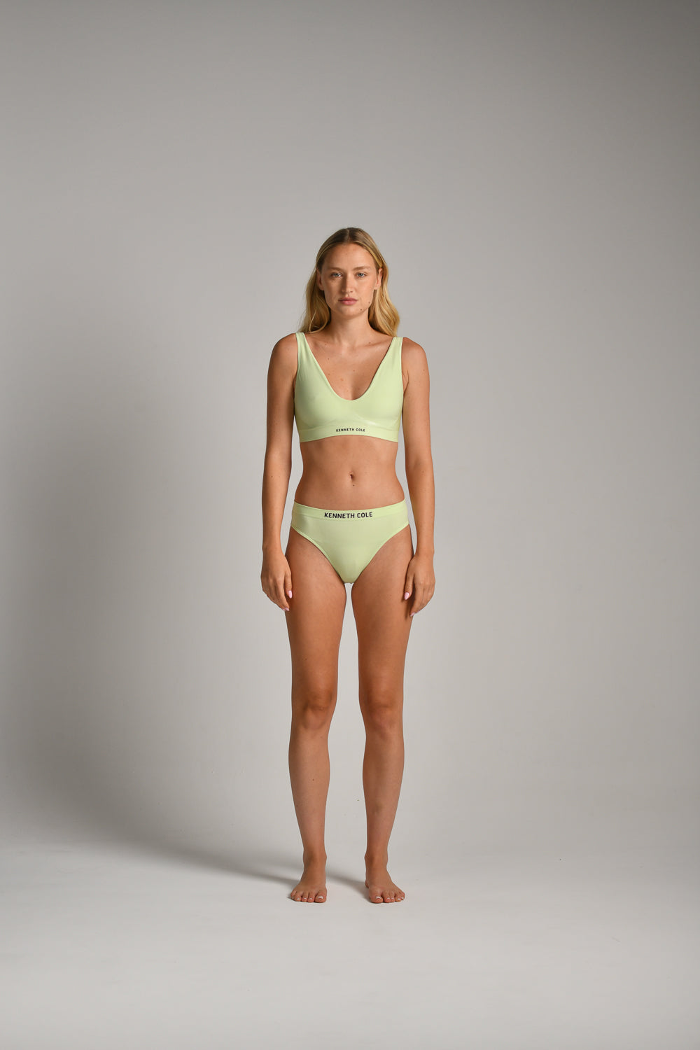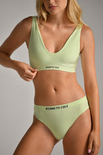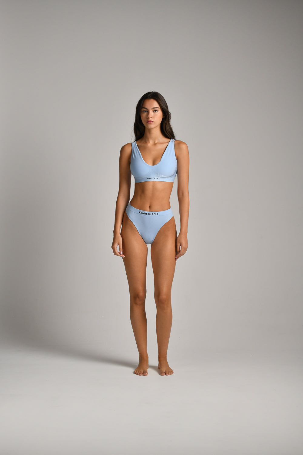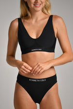 טופ סימלס מבית המותג KENNETH COLE לנשים, מבד ריב , ללא ריפוד, עם מחשוף עגול וסמל המותג בצבע לבן בחזית.