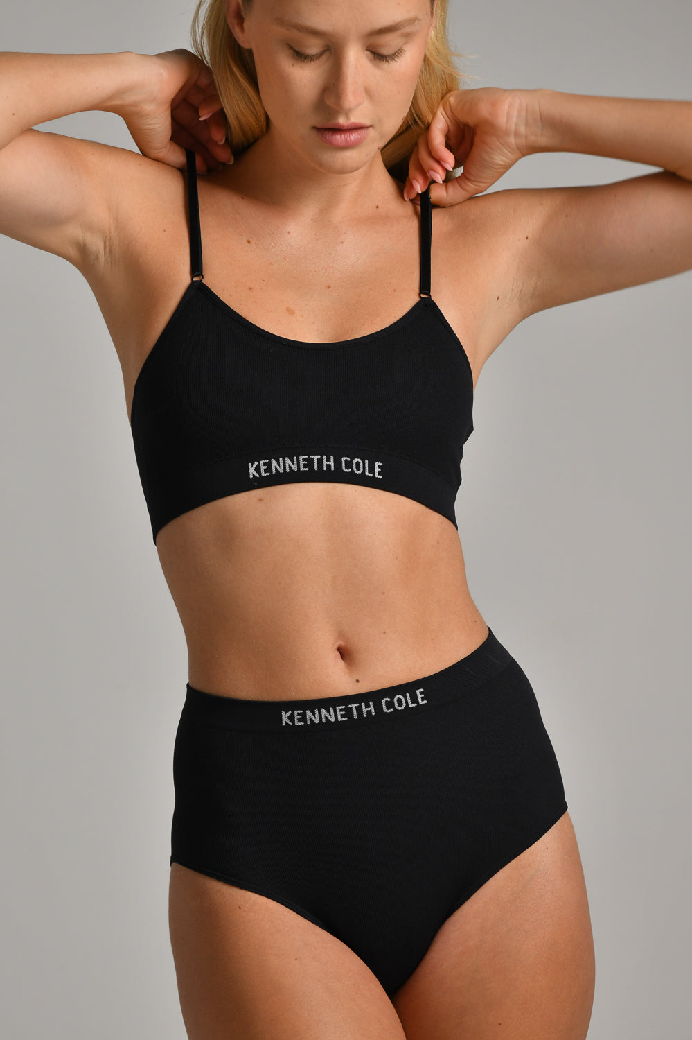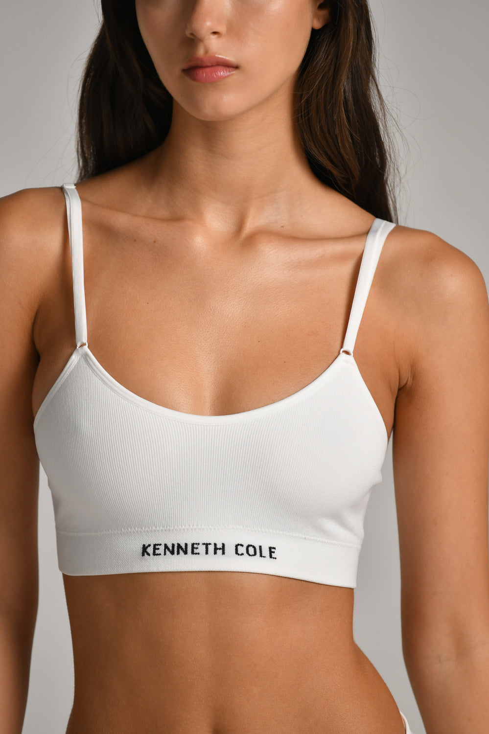 טופ ספגטי מבית המותג KENNETH COLE לנשים, מבד ריב סימלס, ללא ריפוד, עם כתפיות דקות ומתכוונוות מקדימה והדפס לוגו בחזית.