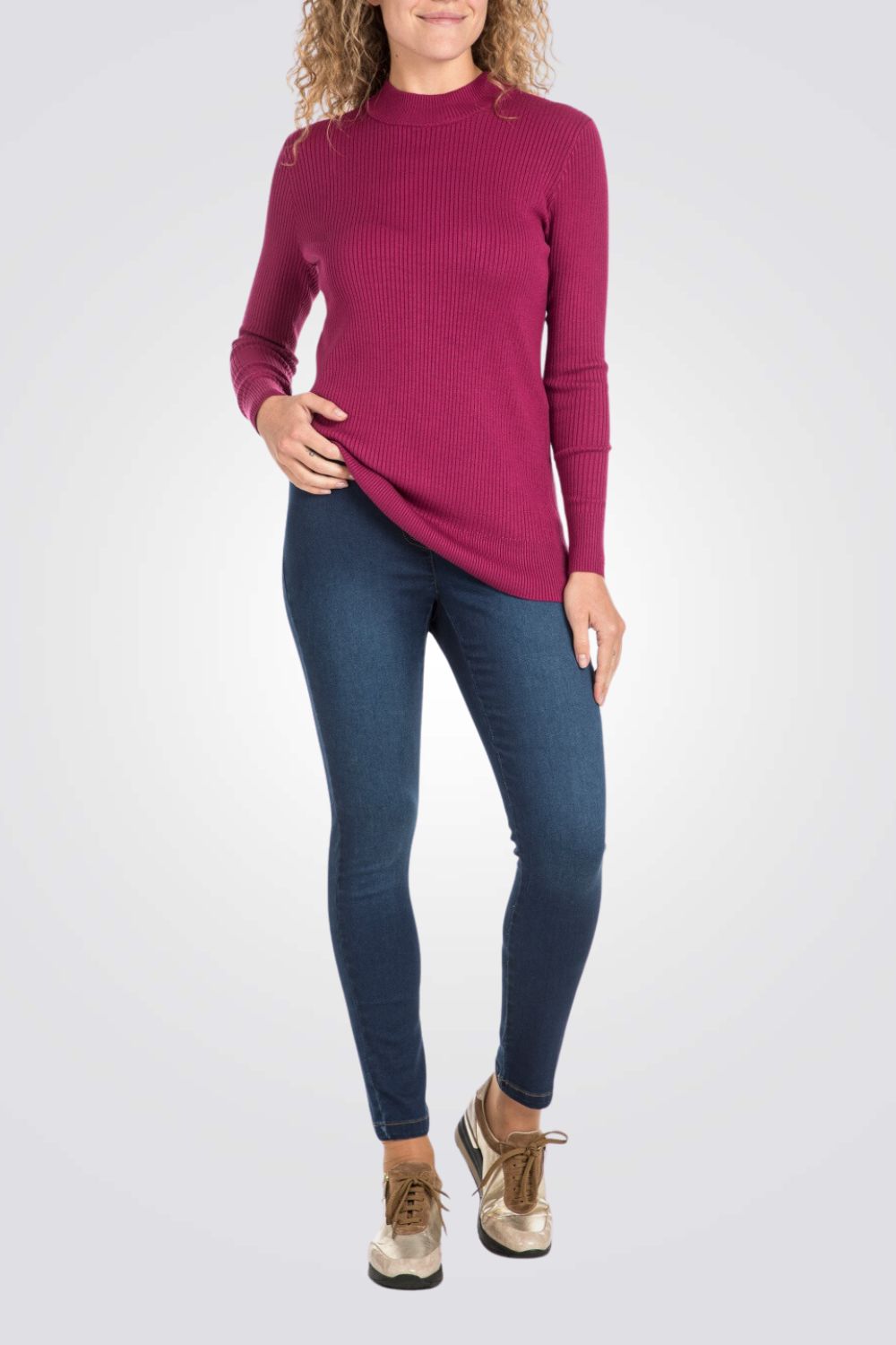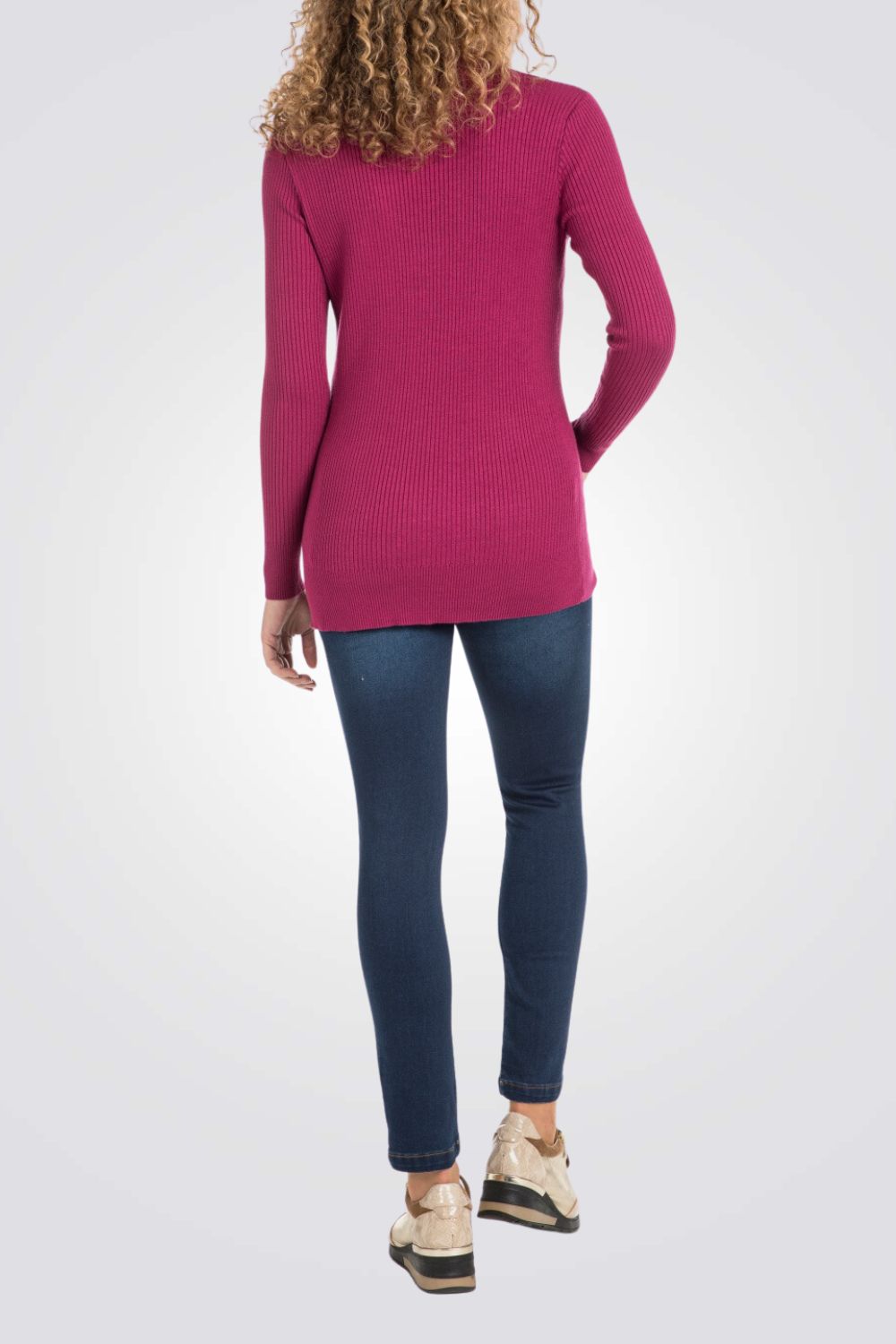 סריג ריב לנשים מבית המותג PUNT ROMA עם שרוולים ארוכים וצווארון גבוה.