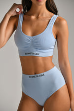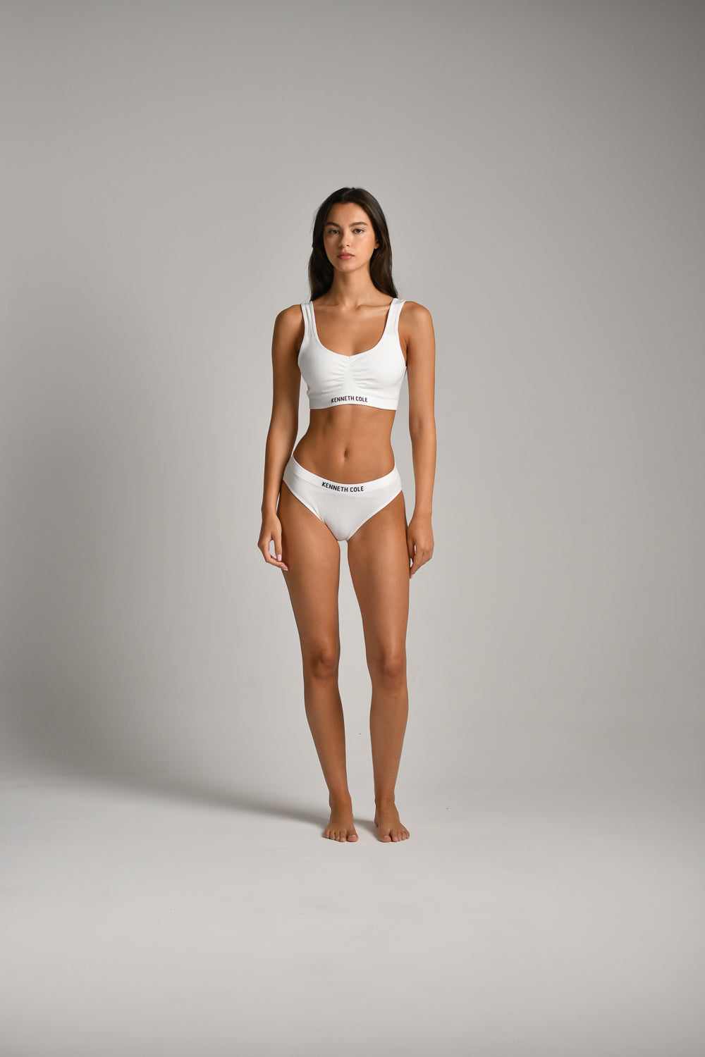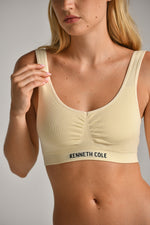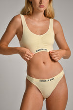 טופ וי מבית המותג KENNETH COLE לנשים, מבד ריב סימלס, ללא ריפוד ומעוצב עם הדפס לוגו בחזית.