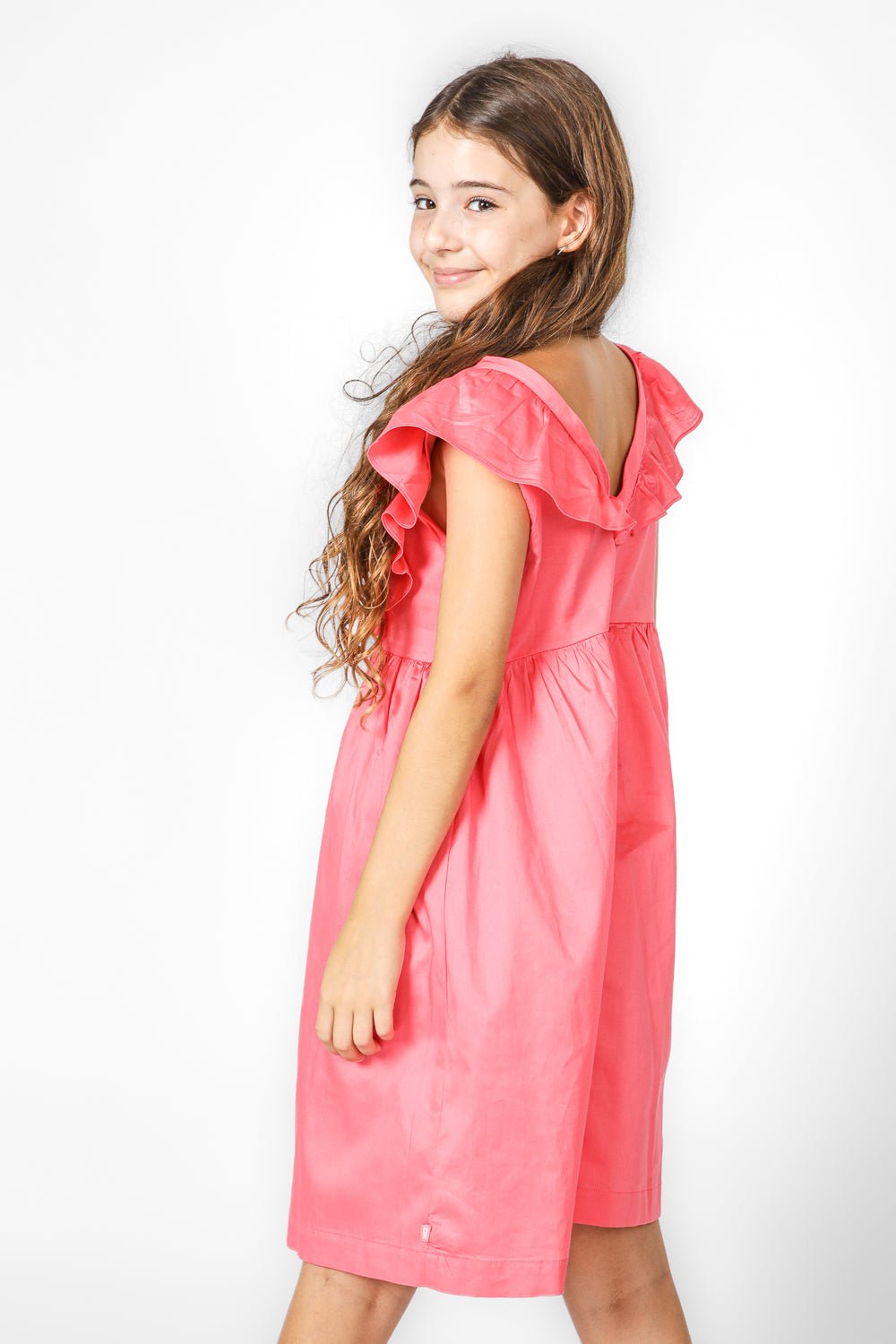 שמלה של המותג OKAIDI לילדות. שמלה שיקית עם שרוולים מסולסלים. יפה לחגים ולמסיבות יום הולדת. פתח רוכסן V בגב. צווארון מרובע מלפנים. הרכב הבד: 100% כותנה