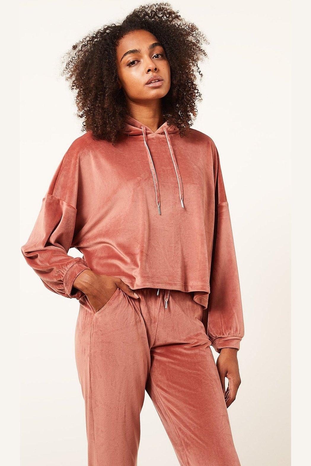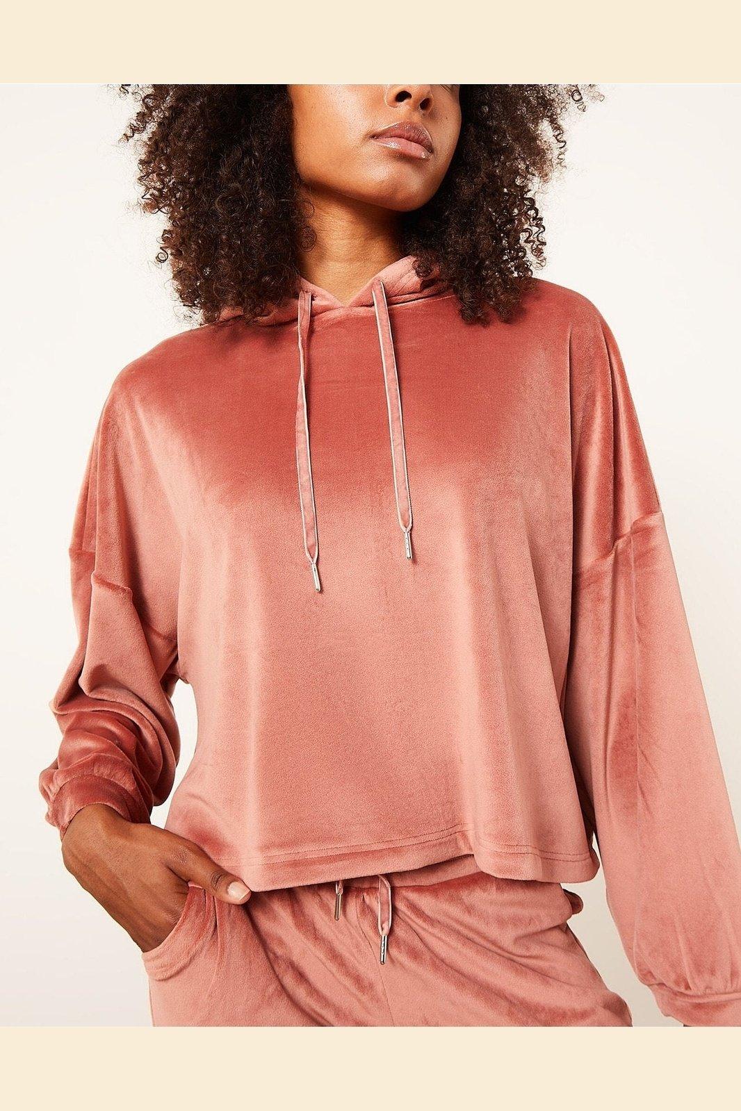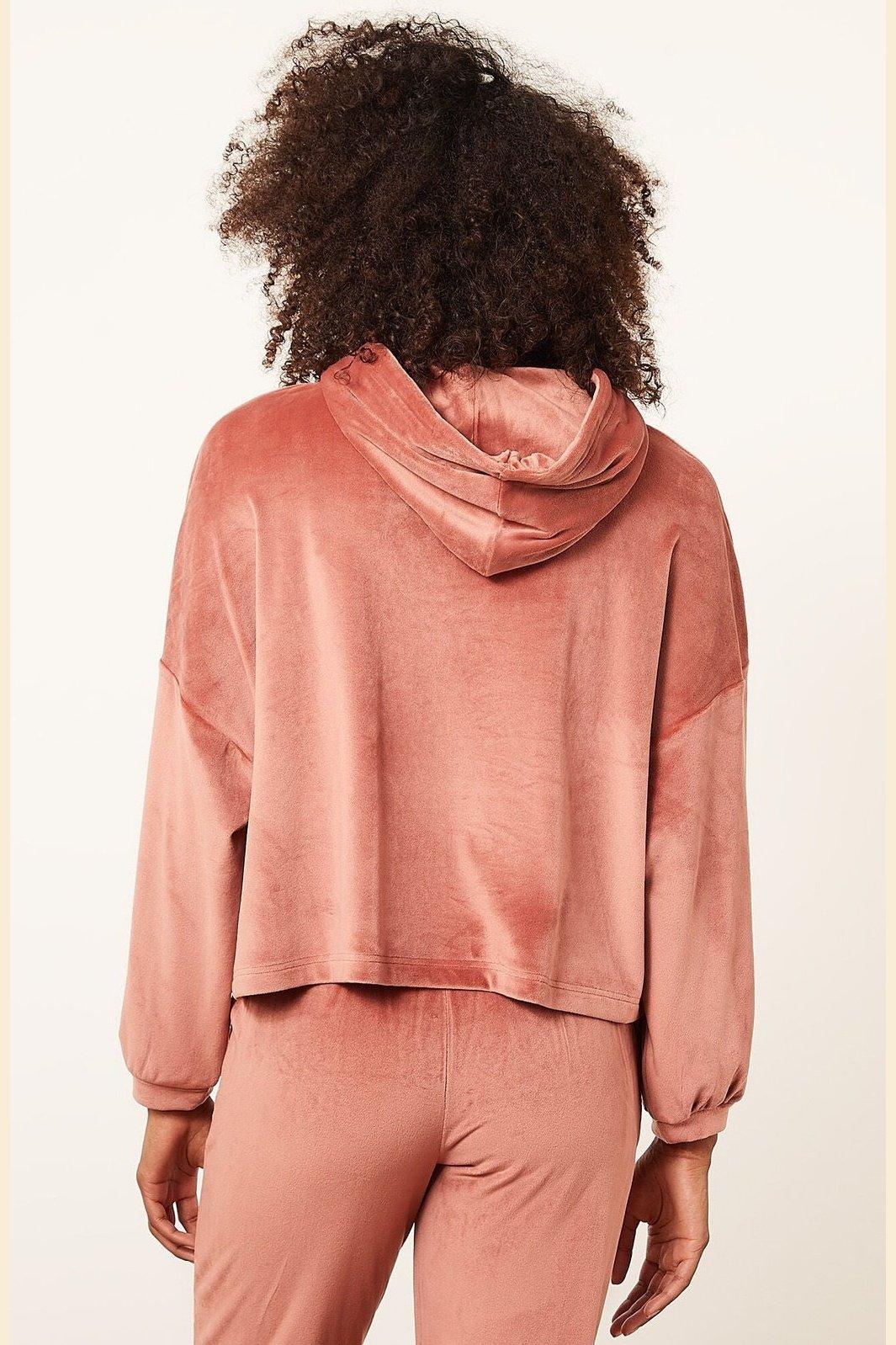 סווטשירט קפוצ'ון קטיפתי YOLA ורוד