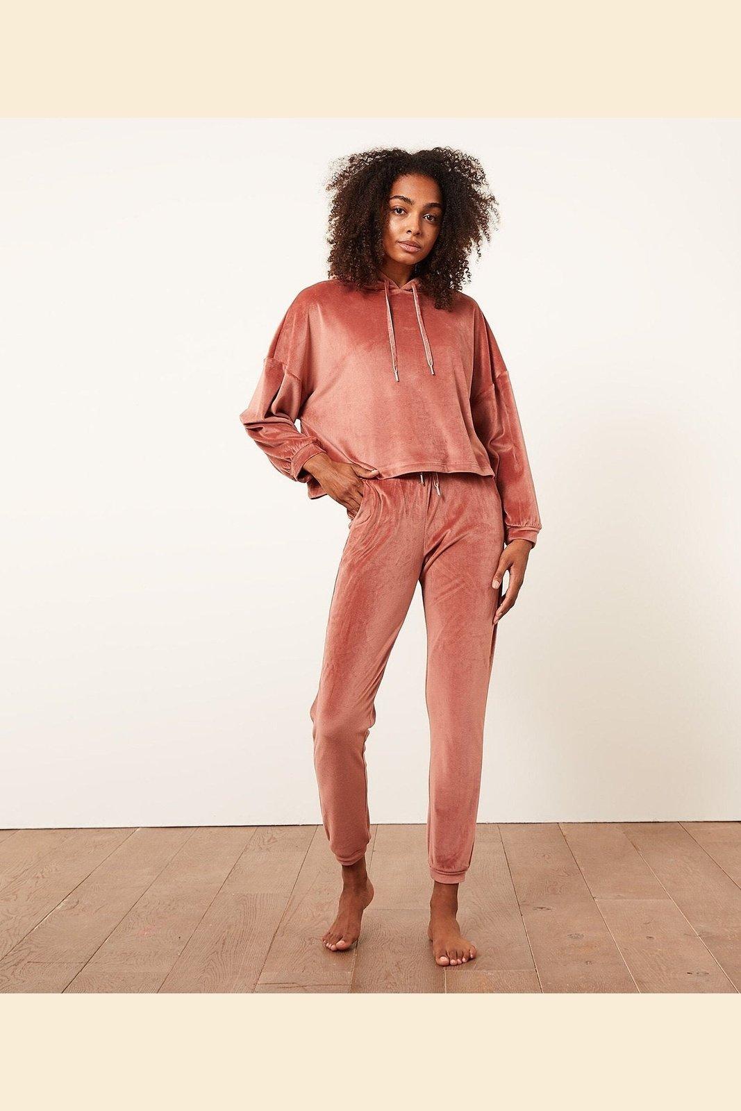 סווטשירט קטיפתי ונעים מבית המותג ETAM בגזרה רחבה ונינוחה, עם כובע קפוצ'ון ולו שרוך קשירה, ושרוולים ארוכים ורחבים בסיומת מנג'ט. מכנסיים תואמים ניתנים לרכישה בנפרד.