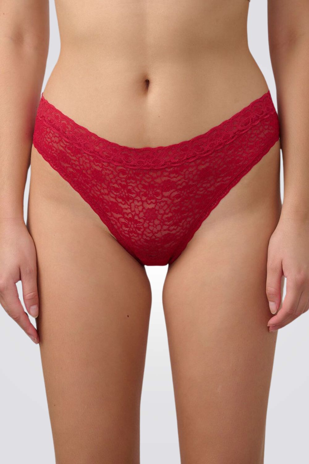 תחתוני ביקיני מחמיאים, עשויים מבד תחרה פרחוני ורומנטי.
