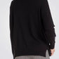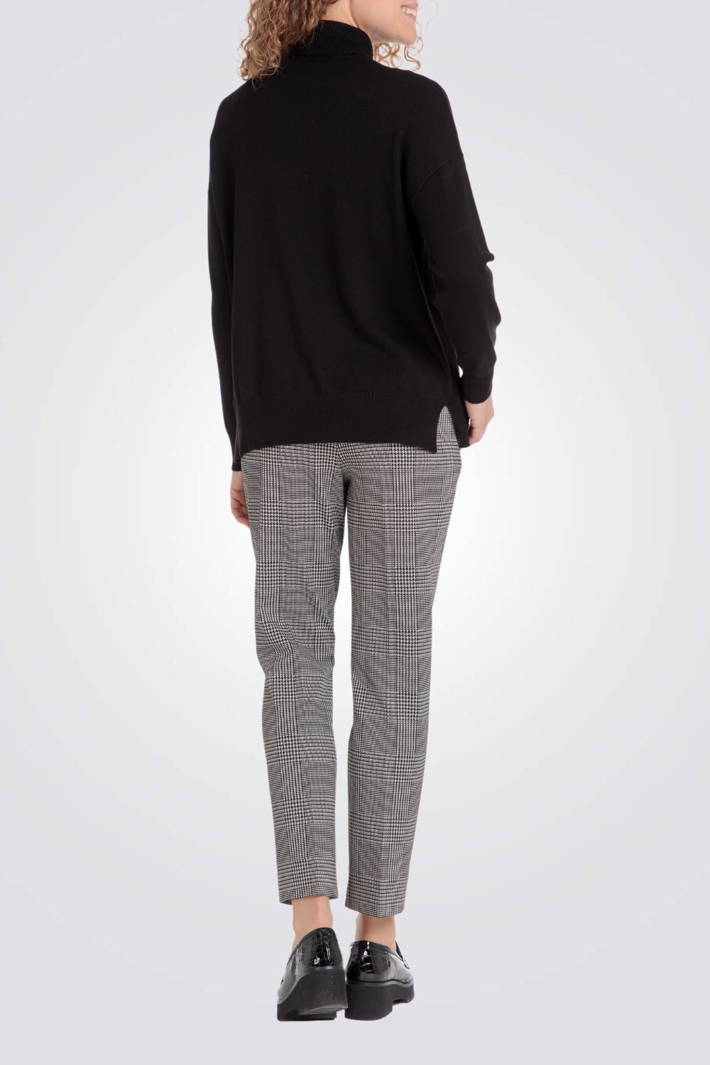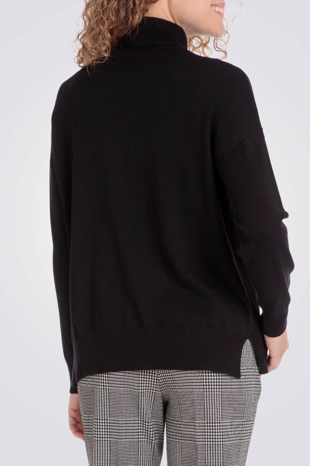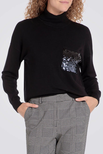 סריג לנשים מבית המותג PUNT ROMA בצבע שחור בגזרה משוחררת, עם שרוולים ארוכים, צווארון גולף, כיס קדמי בשילוב פייטים ושסעים קצרים בצידי החולצה.