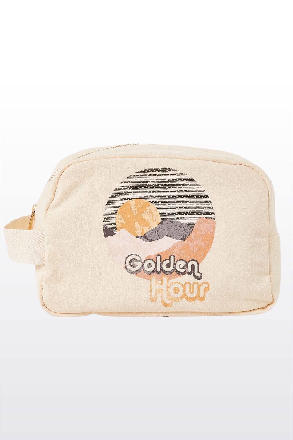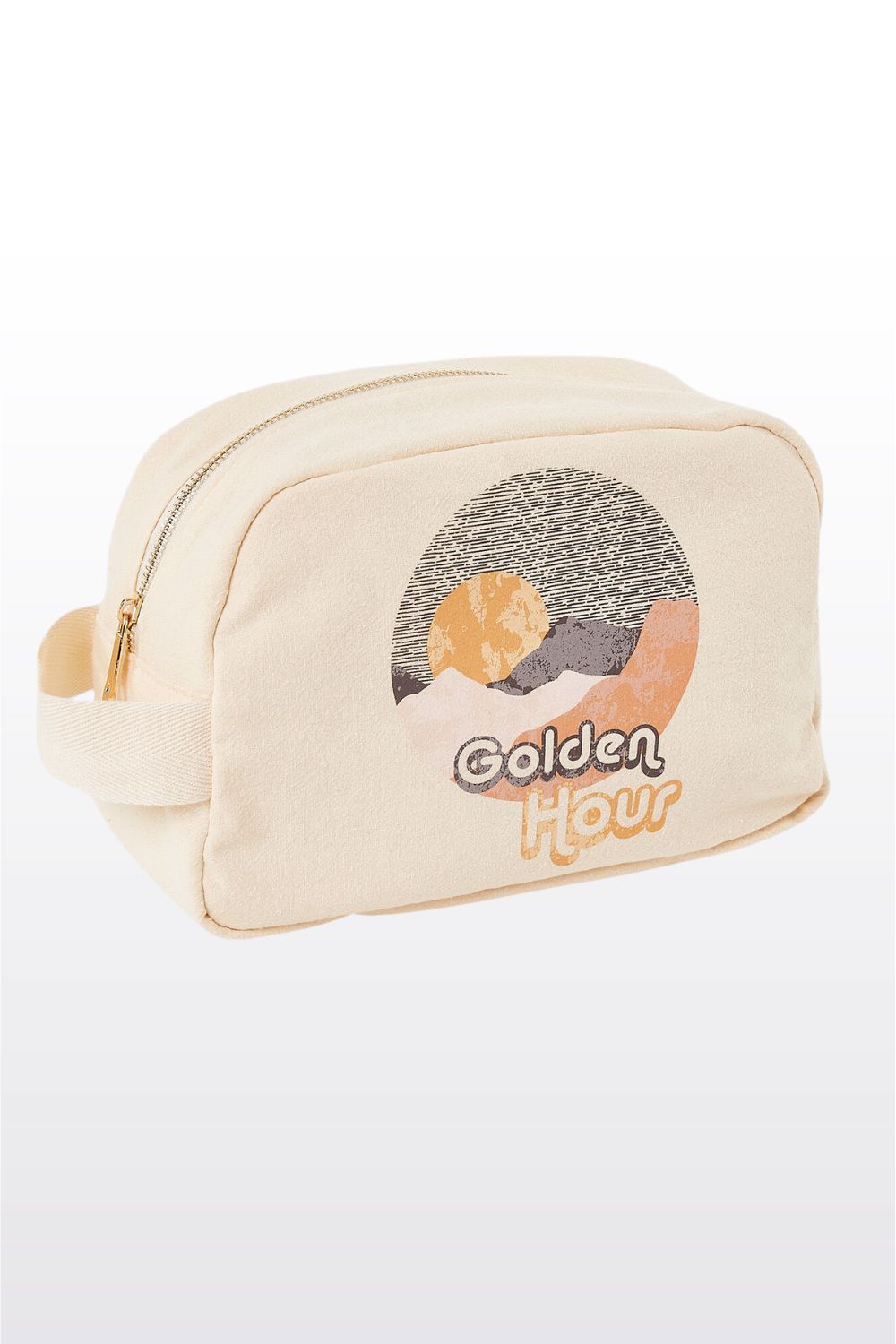 תיק איפור מבית המותג הצרפתי ETAM, בעל תא אחסון אחד גדול, רצועת נשיאה קטנה בצד , סגירת רוכסן ובעל הדפס שקיעה מיוחד.