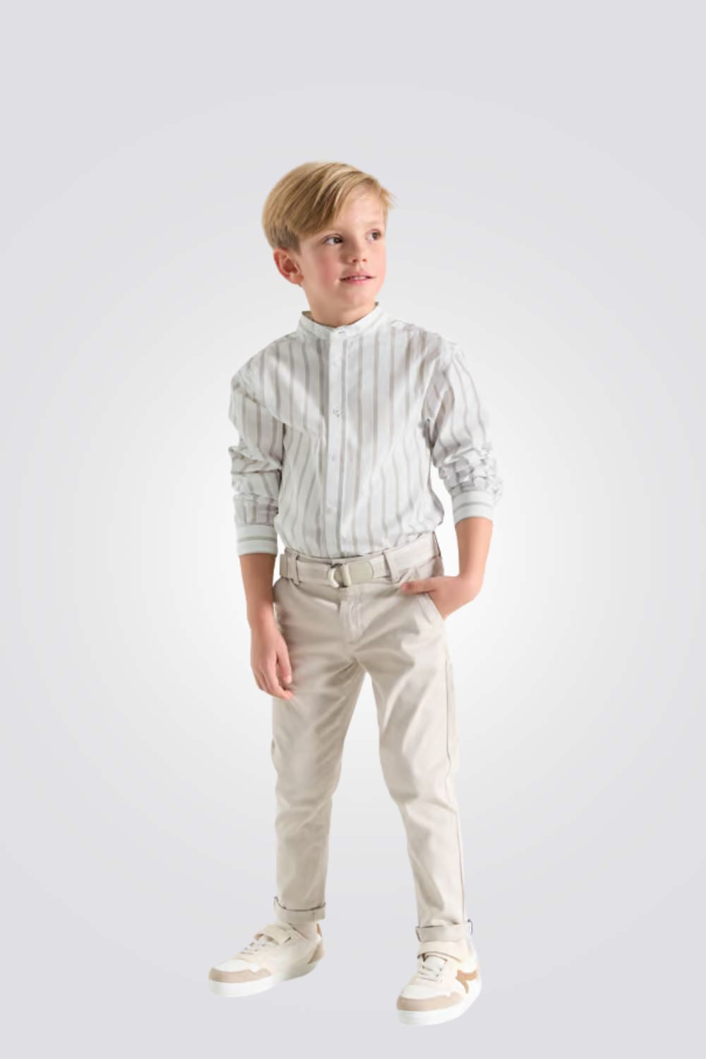 חולצה מכופתרת לילדים בצבע לבן עם פסים