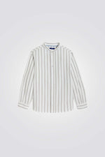 חולצה מכופתרת לילדים מבית המותג OKAIDI, בצבע לבן עם פסים, עשויה מבד נוח, בגזרה ישרה , צווארון קלאסי וסגירת כפתורים.