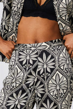 מכנסי פיג'מה ארוכים SILAN פרחים שחור לבן
