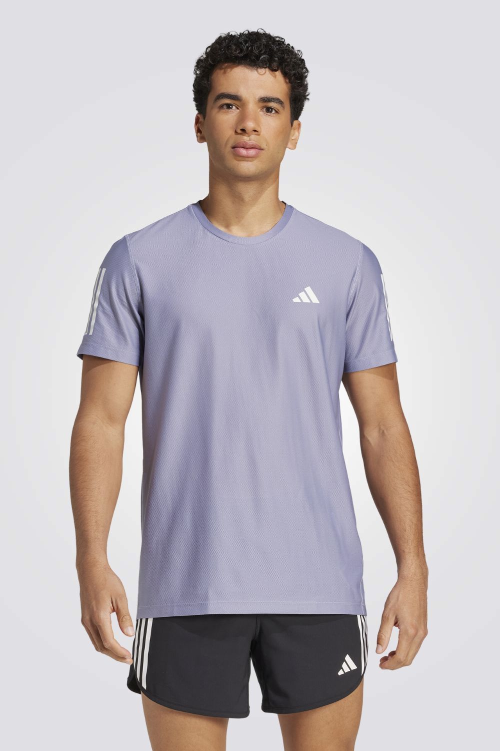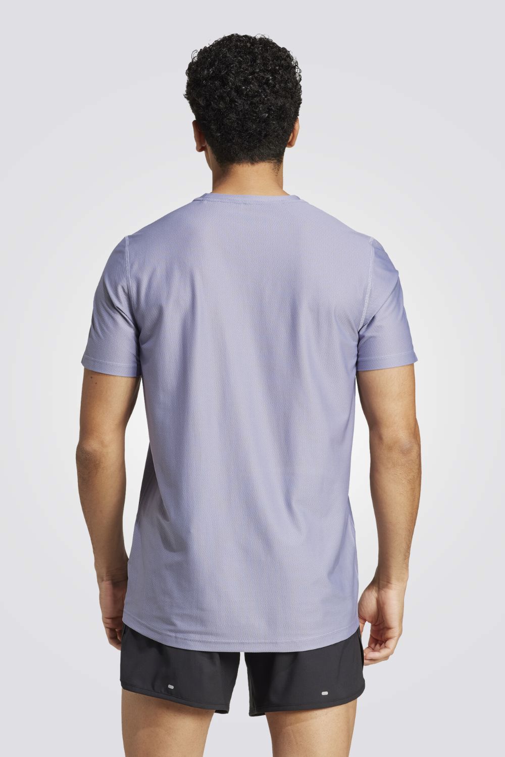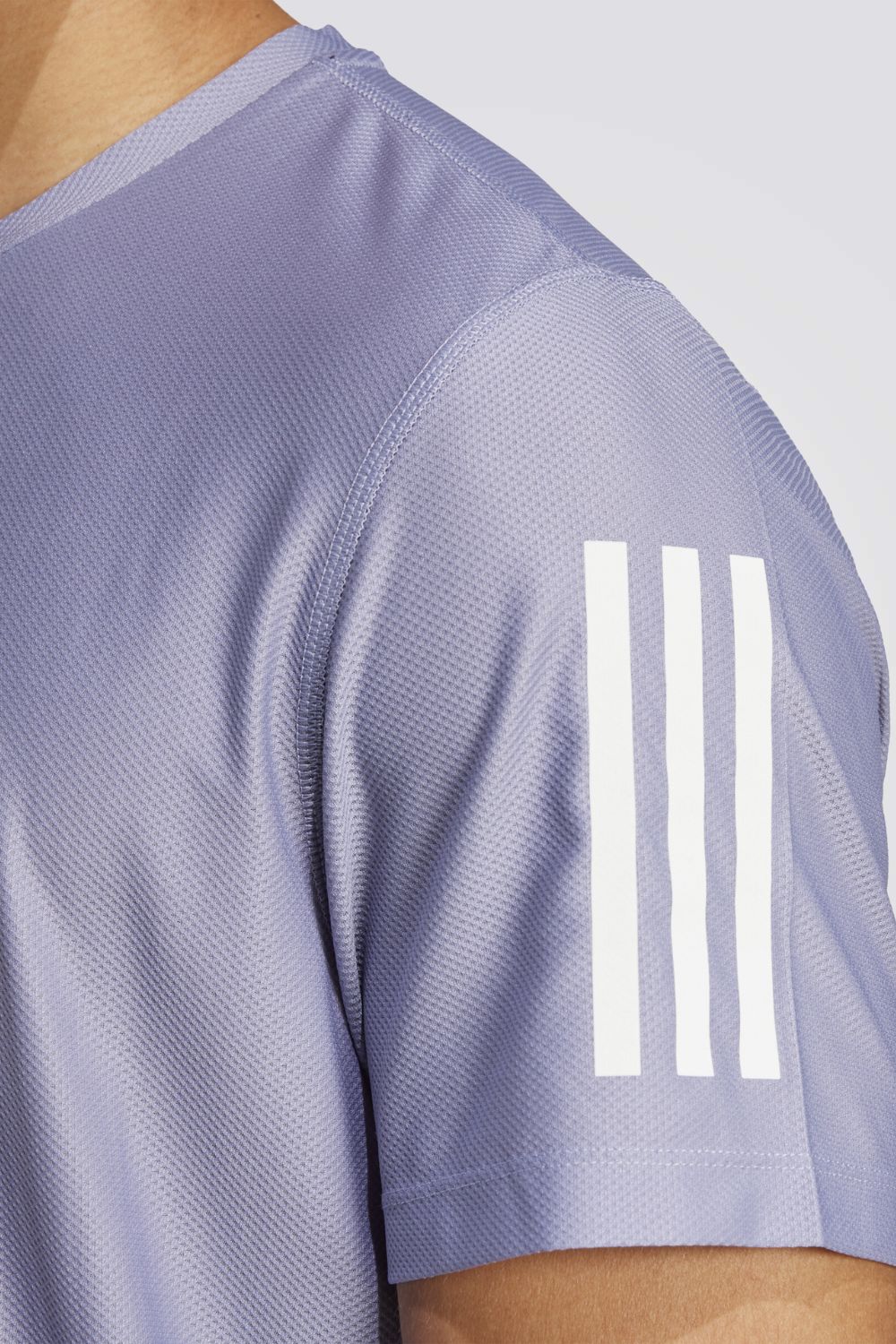 חולצת ספורט קצרה מבית המותג ADIDAS לגברים בצבע סגול, מבד קליל ונוח, בטכנולוגיה AEROREADY מנדף זיעה, צווארון עגול ושלושה פסים מחזירים אור בצידי השרוולים.