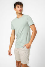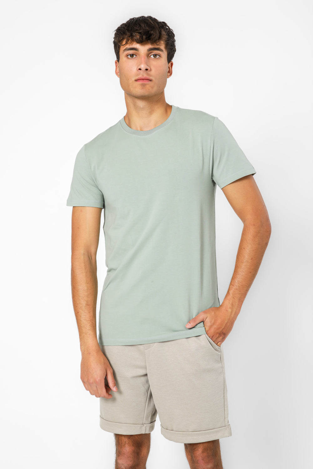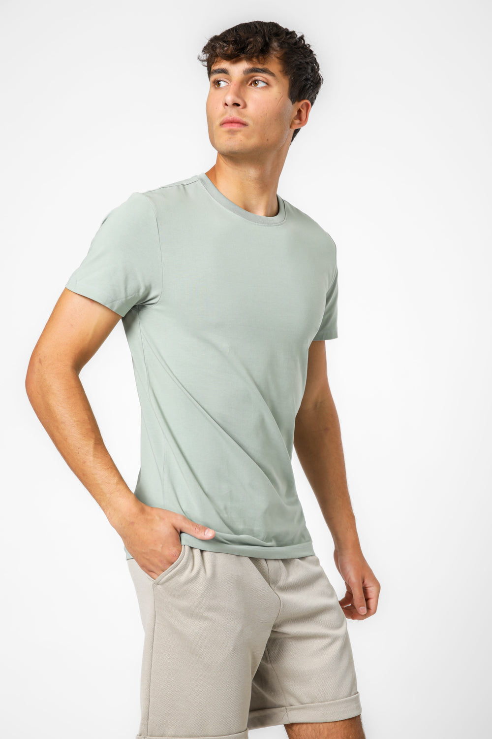 חולצה קצרה לגברים מבית המותג DELTA העשויה מבד סינגל ג’רסי קליל ונעים, בגזרה צמודה עם שרוולים קצרים וצווארון עגול.