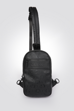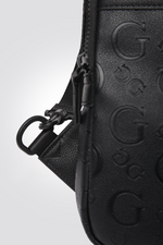 תיק צד לגברים מבית המותג GUESS, בעיצוב קלאסי ,בצבע שחור, שני תאים עם סגירת רוכסן ורצועת צד.